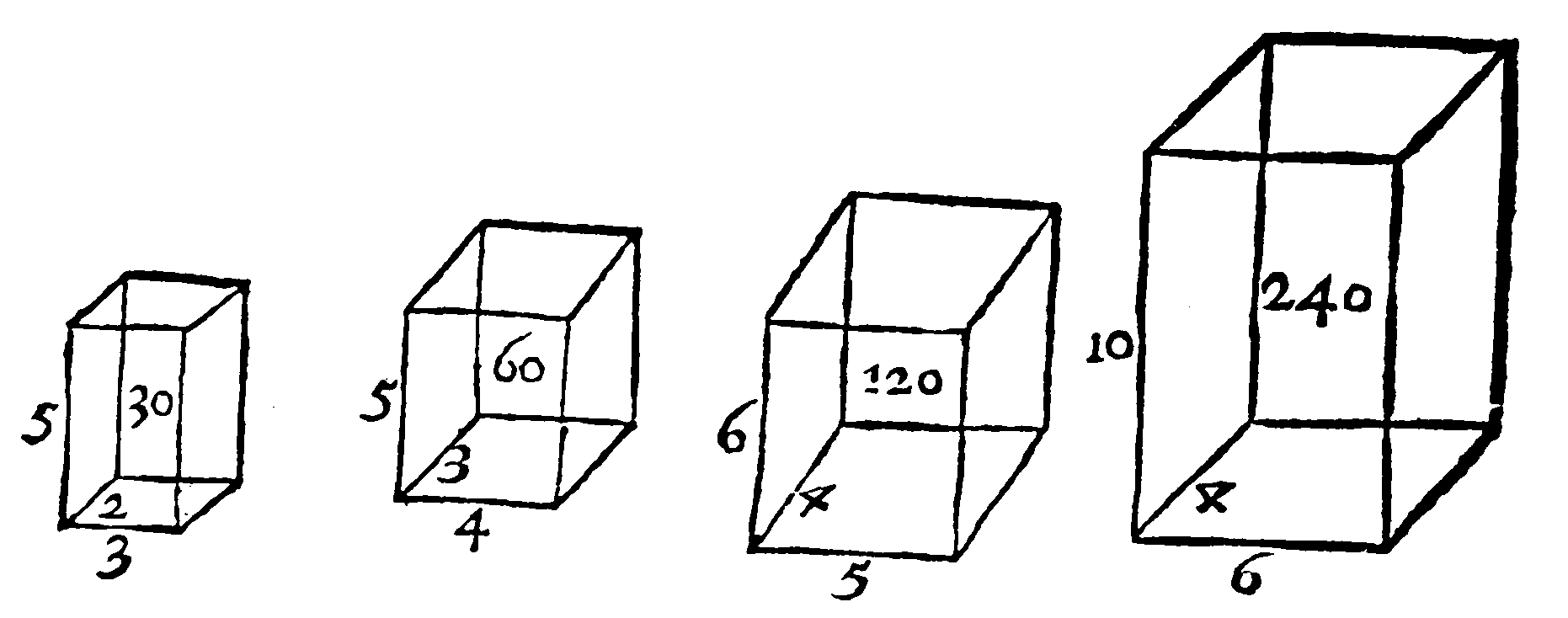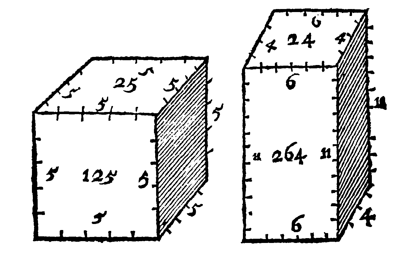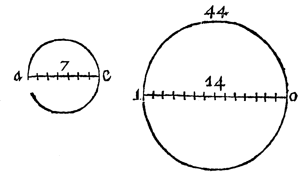 Sackes in which they carry corne, are for the most part of [297]a cylinderlike forme. If an husbandman therefore shall lend unto his neighbour a sacke full or corne, and the base of the sacke be 4 foote over. And the neighbour afterward for that one sacke, shall pay him 4 sacke fulls, every sacke being as long as that was, yet but one foote over in the diameter, he may be thought peradventure to have repayed that which he borrowed in equall measure, to wit in heighth and base. But it shall be indeed farre otherwise: For there is a great difference betweene the quadrate of the foure severall diameters, 1. 1. 1. 1. that is 4: and 16, the quadrate of 4, the diameter of that sacke by which it was lent. For Circles are one unto another as the quadrates of their diameters are one to another, by the 2 e xv. Therefore he payd him but one fourth part of that which he borrowed of him.