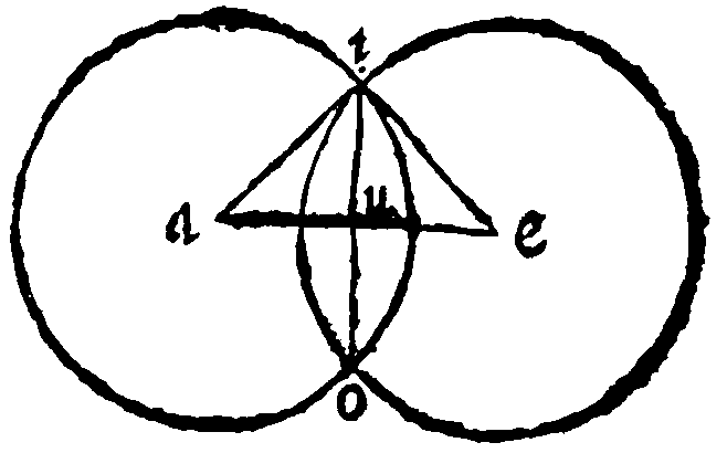 As here let the Axis ae; be the diameter of the circle aue, and ai, equall to the same axis, and perpendicular from the end, be knit unto the center, by the right line io: A right drawne from the section u, unto a, shall be the side of the Icosahedrum. From u, let the perpendicular uy, be drawne: Here the two triangles iao, & uyo, are equiangles by the 13 e, vij. Therfore by the 12 e, vij. as ia, is unto ao: so is uy, unto yo. But ia, is the double of the said ao: Therefore uy, is the double of the same yo: Therefore by the 14 e, xij, it is of quadruple power unto it: And therefore also uy, and yo, that is, by the 9 e xij, uo, that is againe by the 28 e, iiij, ao, is of quintuple power to yo. But yo, is lesser than ao, that is, than oe: Let therefore os, be cut off equall to it. Now as the halfe of ao, is of quintuple valew to the halfe of yo: so the double ae, is of quintuple power to the double ys. Therefore, by the 18 e xxv. seeing that the diagony ae, is of quintuple power to ys; the said ys, shall be the side of the sexangle inscribed into a circle, circumscribing the quinquangle of the Icosahedrum. But the perpendicular uy, is equall to ys; because each of them is the double of yo. Wherefore uy, is the side of the sexangle. But ay, is the side of the Decangle: For it is equall to se: Because if from equall rayes ao, and oe, you take equall portions oy, and os: There shall remaine equall, ya, and se. And the Diagony of an Icosahedrum by the 16 e xxv, is compounded of the side of the sexangle, continued at each end with the side of the decangle. Wherefore ay, is the side of the decangle. Lastly, ua, whose power is as much as the sides of the [289]sexangle and decangle, by the 15. e, xviij, shall be the side of an Icosahedrum.