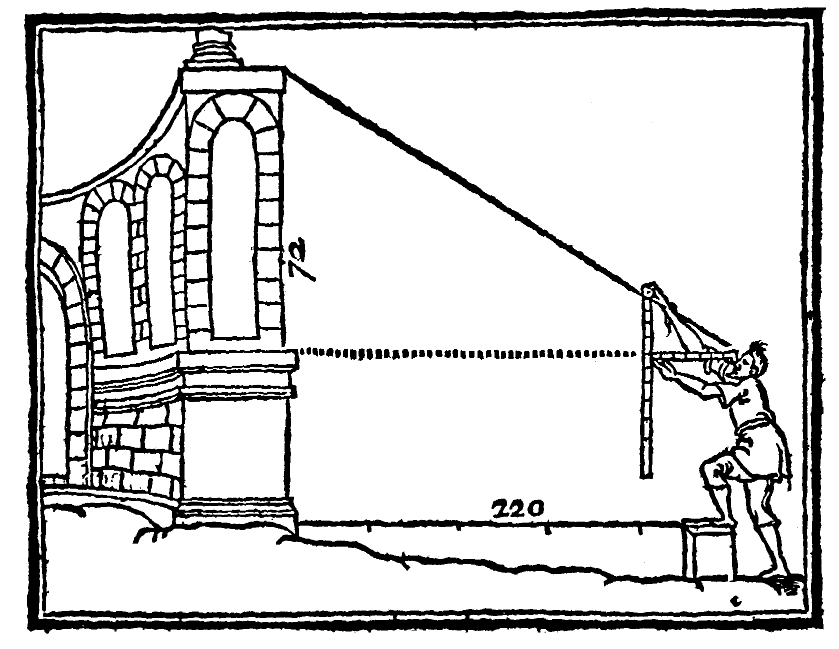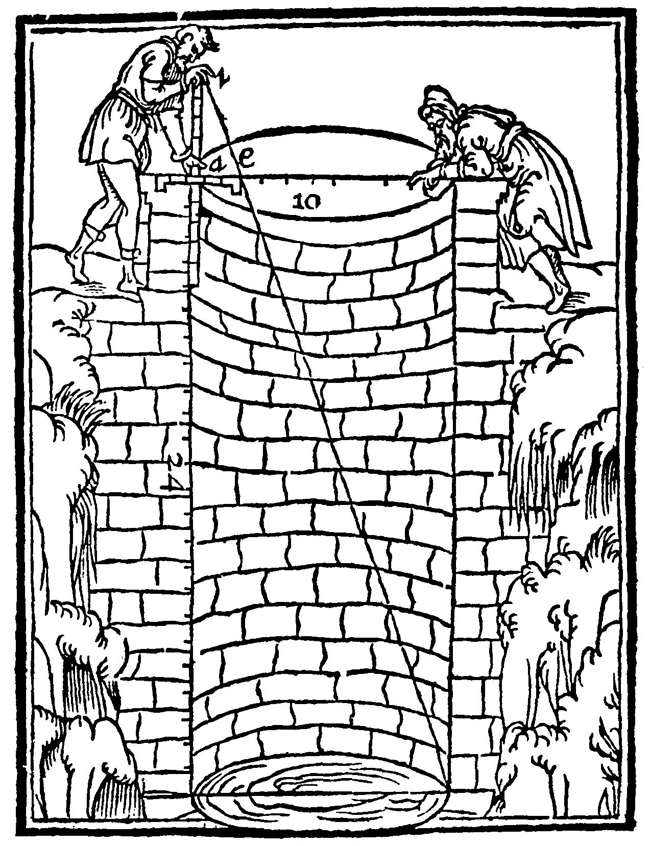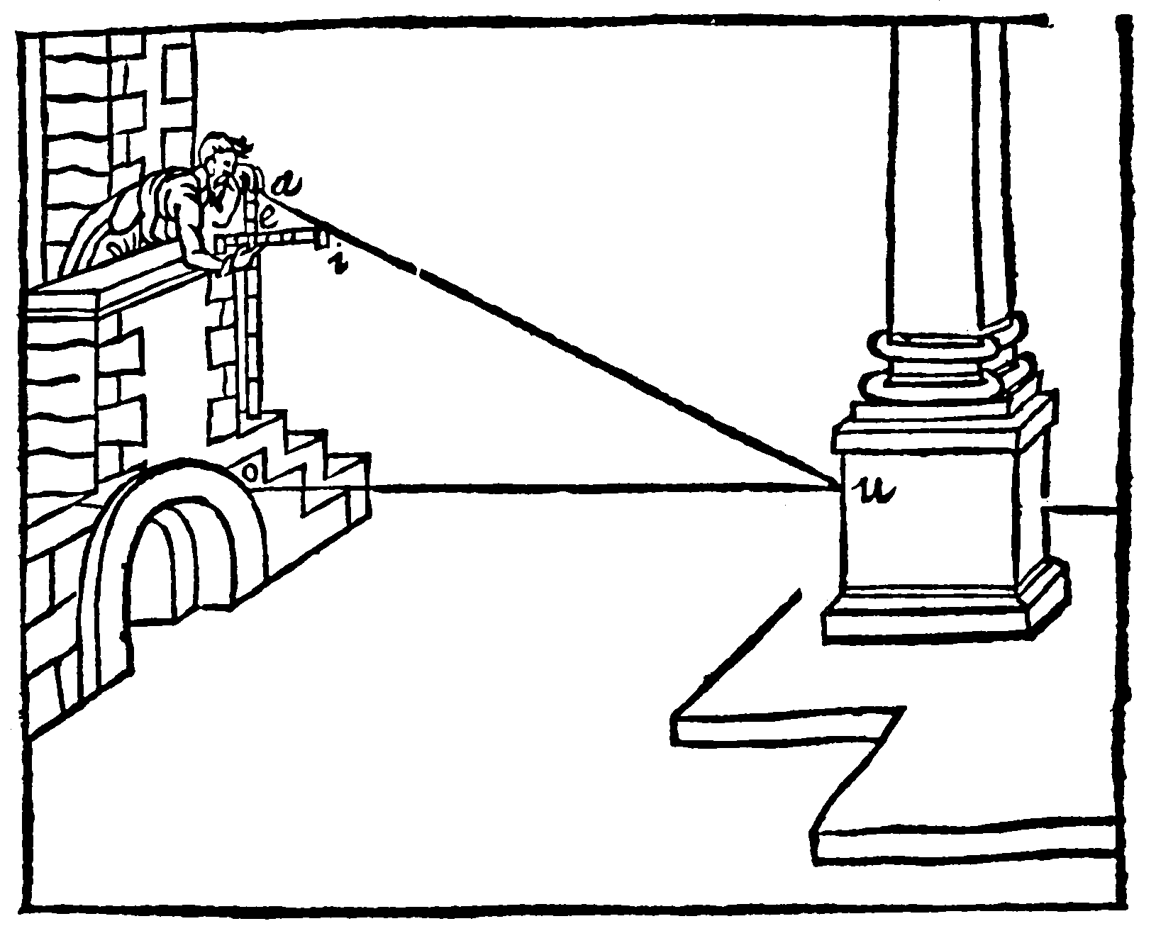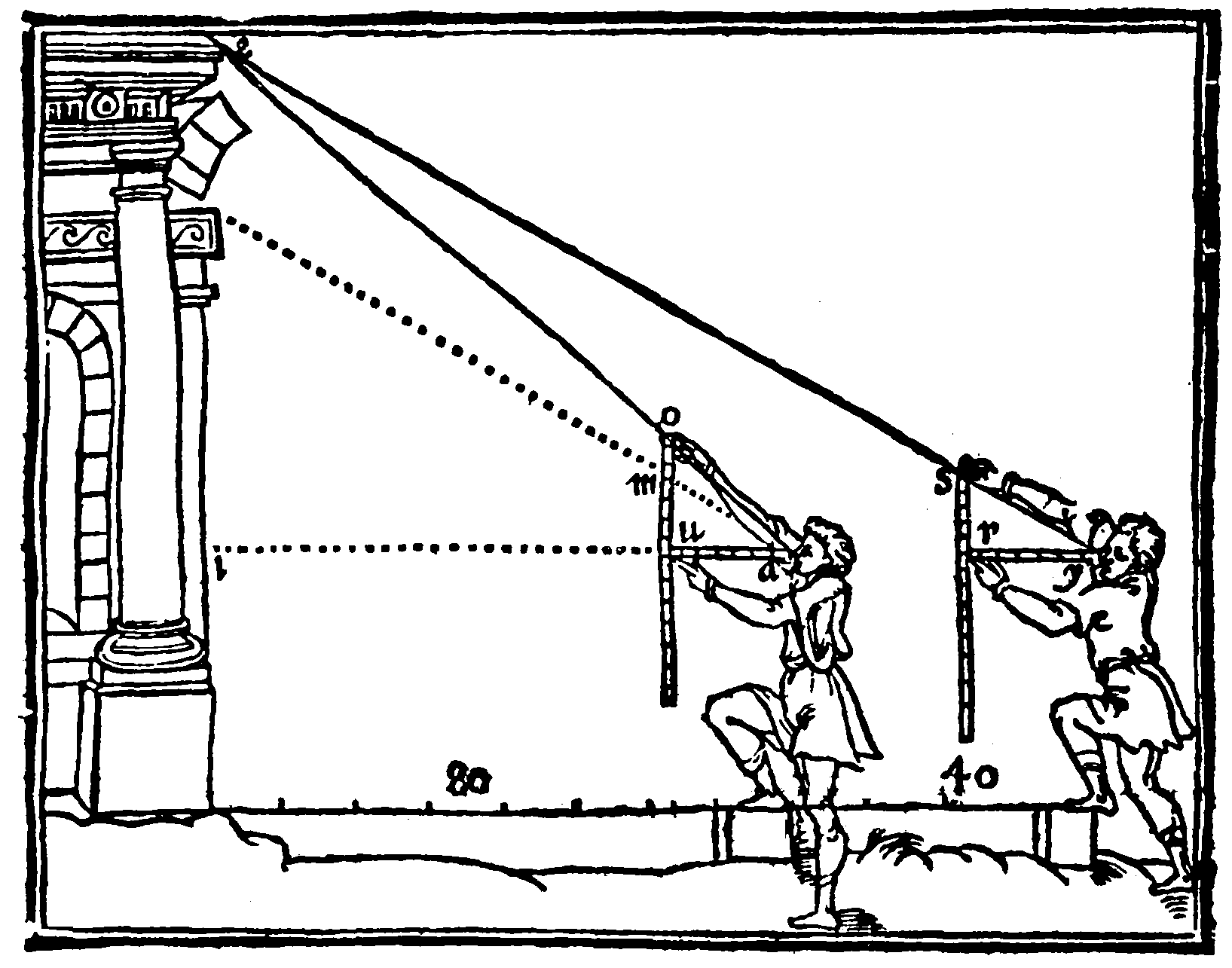 But this end of Geometry will appeare much more beautifull and glorious in the use and geometricall workes and [2]practise then by precepts, when thou shalt observe Astronomers, Geographers, Land-meaters, Sea-men, Enginers, Architects, Carpenters, Painters, and Carvers, in the description and measuring of the Starres, Countries, Lands, Engins, Seas, Buildings, Pictures, and Statues or Images to use the helpe of no other art but of Geometry. Wherefore here the name of this art commeth farre short of the thing meant by it. (For Geometria, made of Gè, which in the Greeke language signifieth the Earth; and Métron, a measure, importeth no more, but as one would say Land-measuring. And Geometra, is but Agrimensor, A land-meter: or as Tully calleth him Decempedator, a Pole-man: or as Plautus, Finitor, a Marke-man.) when as this Art teacheth not only how to measure the Land or the Earth, but the Water, and the Aire, yea and the whole World too, and in it all Bodies, Surfaces, Lines, and whatsoever else is to bee measured.