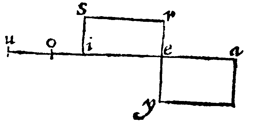 If the same axis be cut into two halfes, as in u: And the perpendicular uy, be erected: And y, and a, be knit together, the same ya, thus knitting them, shall be the side of the Octahedrum, as is manifest in like manner, by the said 10 e, viij, and 25 e iiij.