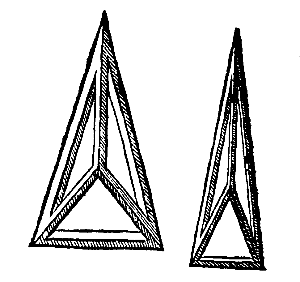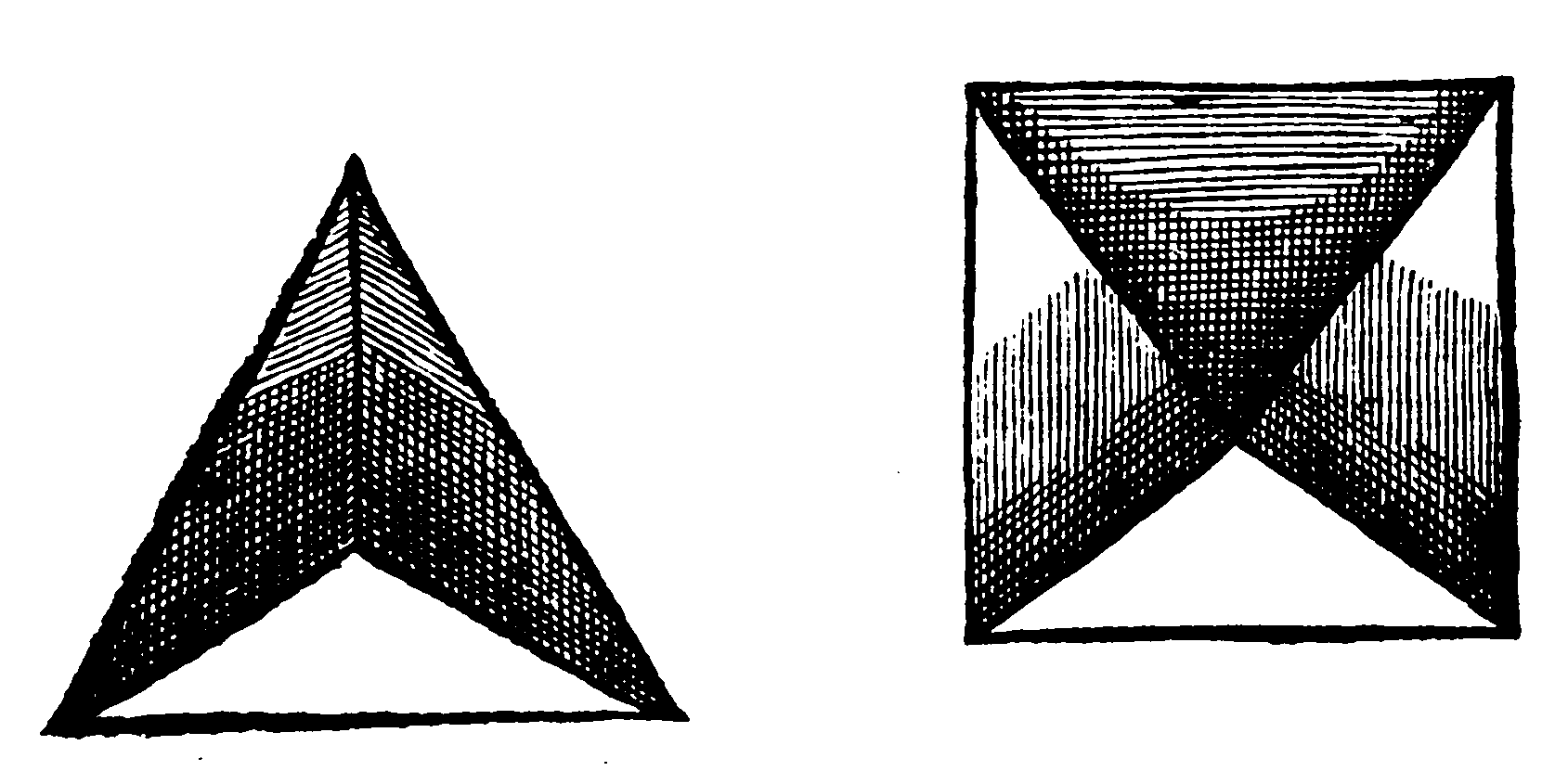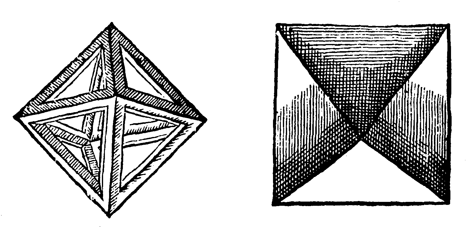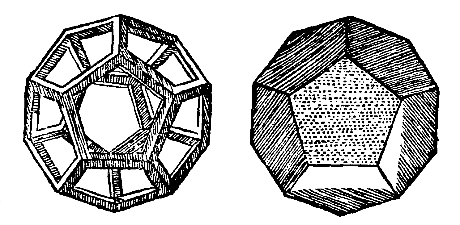 This demonstration doth indeed very accurately and manifestly appeare, Although there may be an innumerable sort of ordinate plaines, yet of the kindes of angles five onely ordinate bodies may be made; From whence the Tetrahedrum, Octahedrum, and Icosahedrum are made upon a triangular base: the Cube upon a quadrangular: And the Dodecahedrum, upon a quinquangular.