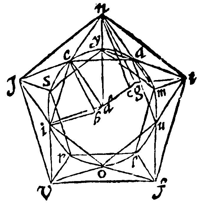 19. A mingled ordinate polyedrum of a [279]quinquangular base is that which is comprehended of 12 quinquangles, and it is called a Dodecaedrum.
