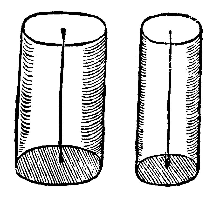 From hence the capacity or content of cylinder-like [295]vessell or measure is esteemed and judged of. For the hollow or empty place is to be measured as if it were a solid body.
