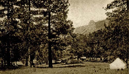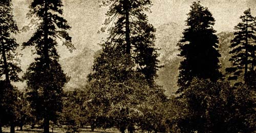 At noon we reached our first resting-place, a little valley just at the base of old Tahquitch. Then, fear almost forgot, the glorious wonder of the way took possession of me. Even now, as I recall that first highland camp, a dreamy restfulness steals[6] over mind and heart. The soft, abundant verdure of that rugged floor; the girded strength of the everlasting hills; the burden of myth and legend investing every peak and rock and valley with half-suggested mystery—it was worth the labor, was it worth the fear?