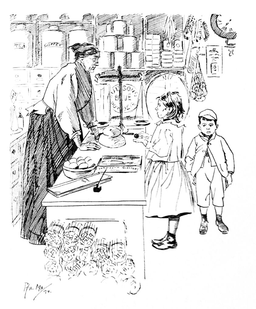 Shopkeeper (amused). “They are Four Shillings and Sixpence a Pound, my Lad.”