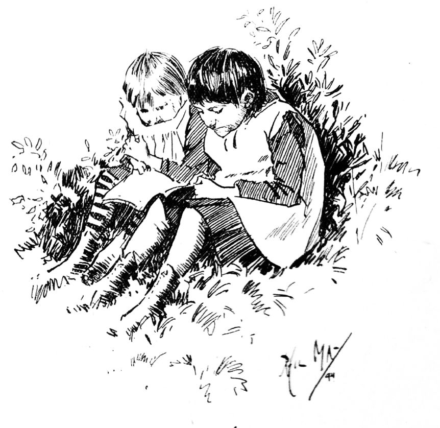 Kitty (reading a fairy tale). “‘Once upon a time there was a frog——’”