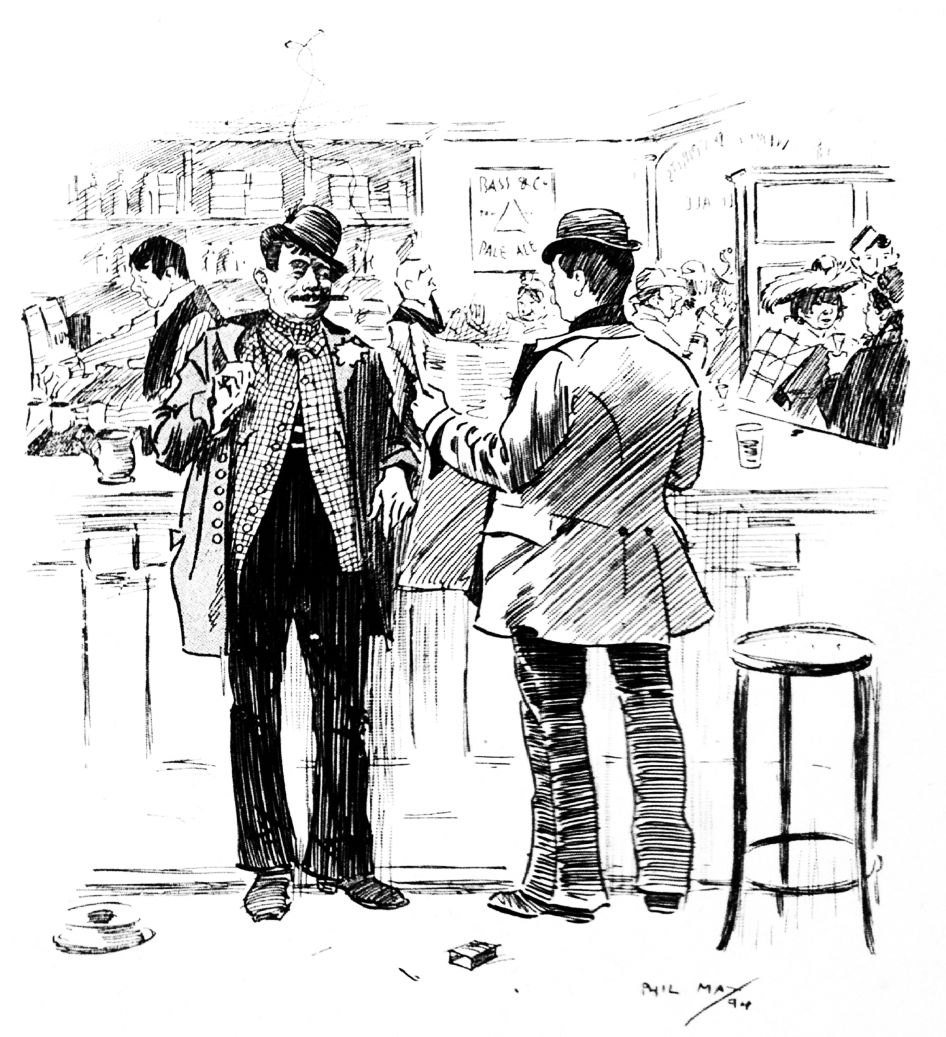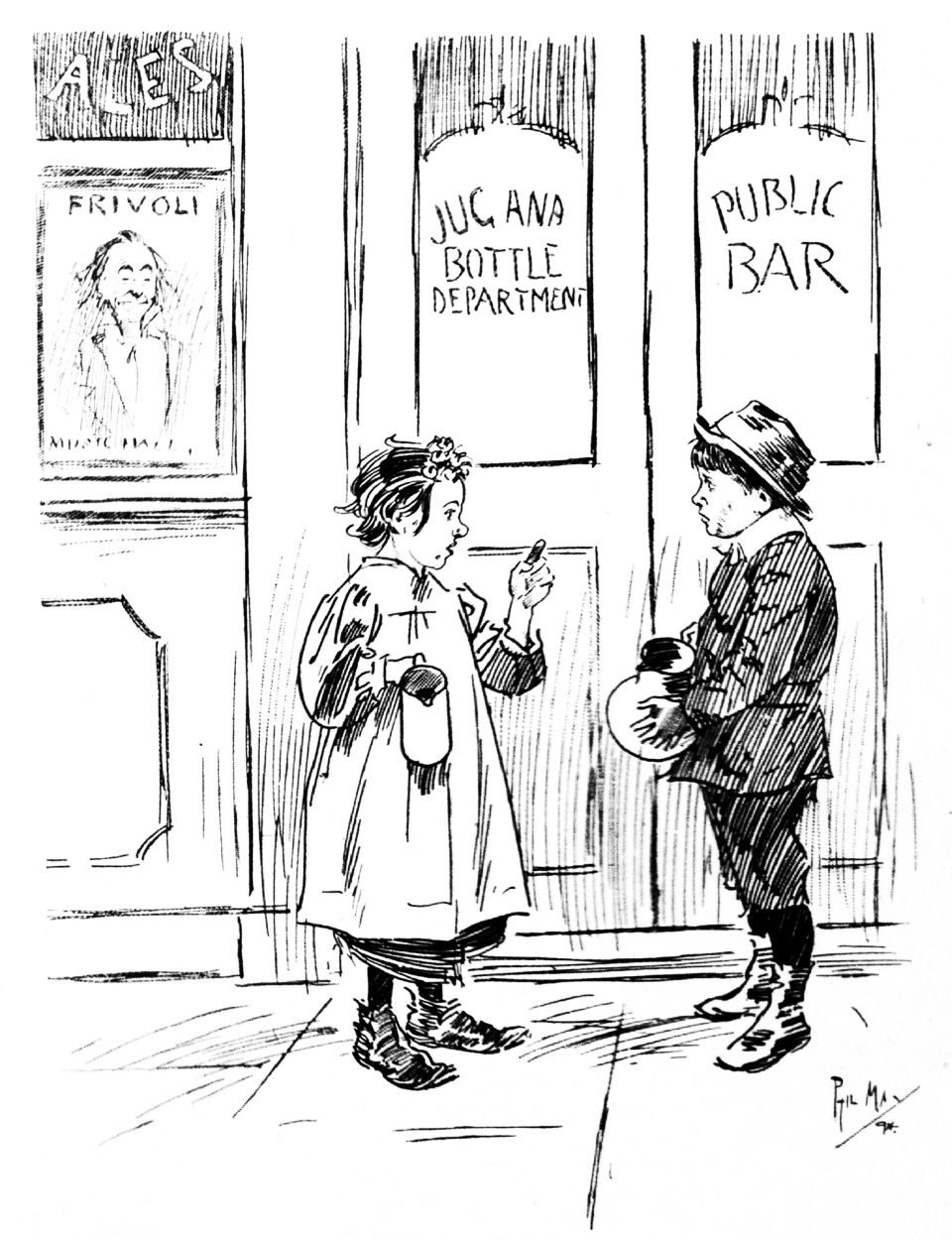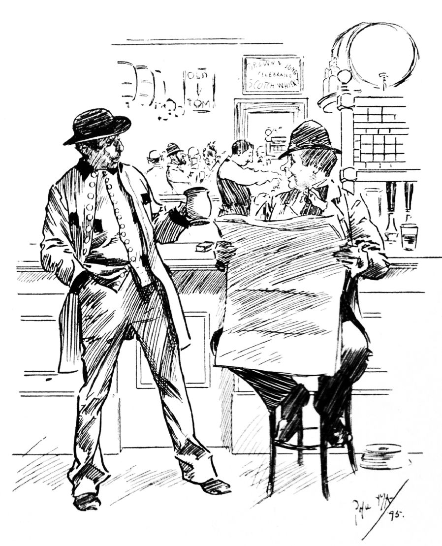 Bill (of superior intelligence). “Well, yer see, Jim, it’s heither a Licensed Wittlers’ or a Teetotal Dodge. The Wages’ll be paid in Silver, and no more Coppers. So you can’t get no arf-pint nor hanythink under a Sixpence or a Thrip’ny. Then you heither leaves it alone, and takes to Water like a Duck, or you runs up a score.”