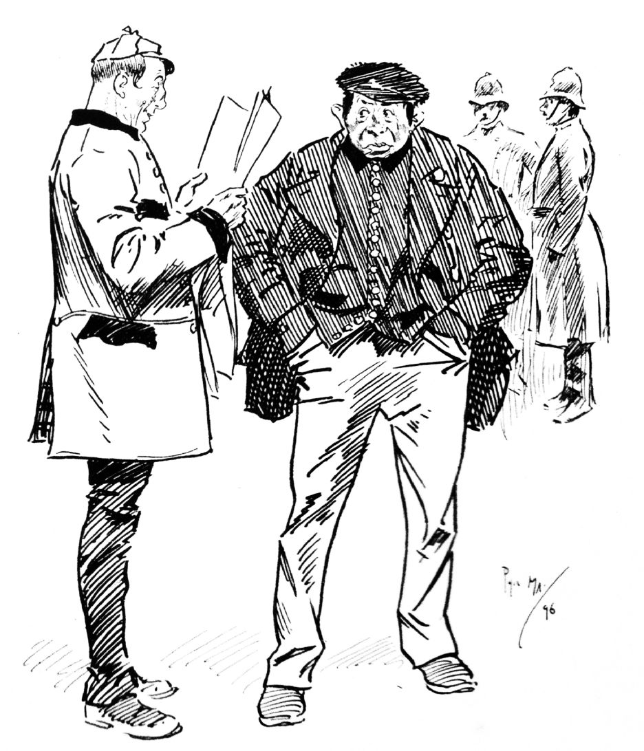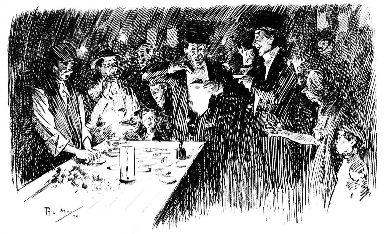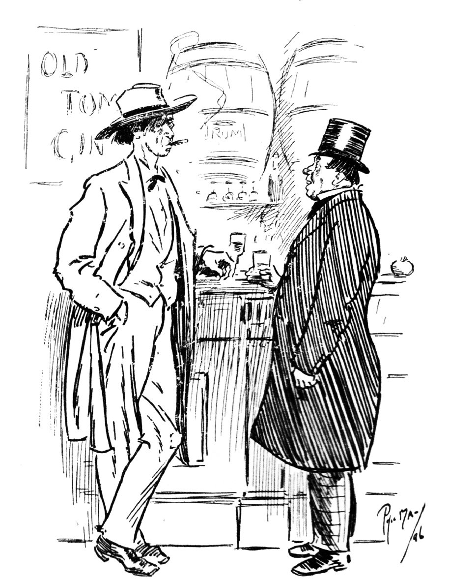 Bill (of superior intelligence). “Well, yer see, Jim, it’s heither a Licensed Wittlers’ or a Teetotal Dodge. The Wages’ll be paid in Silver, and no more Coppers. So you can’t get no arf-pint nor hanythink under a Sixpence or a Thrip’ny. Then you heither leaves it alone, and takes to Water like a Duck, or you runs up a score.”