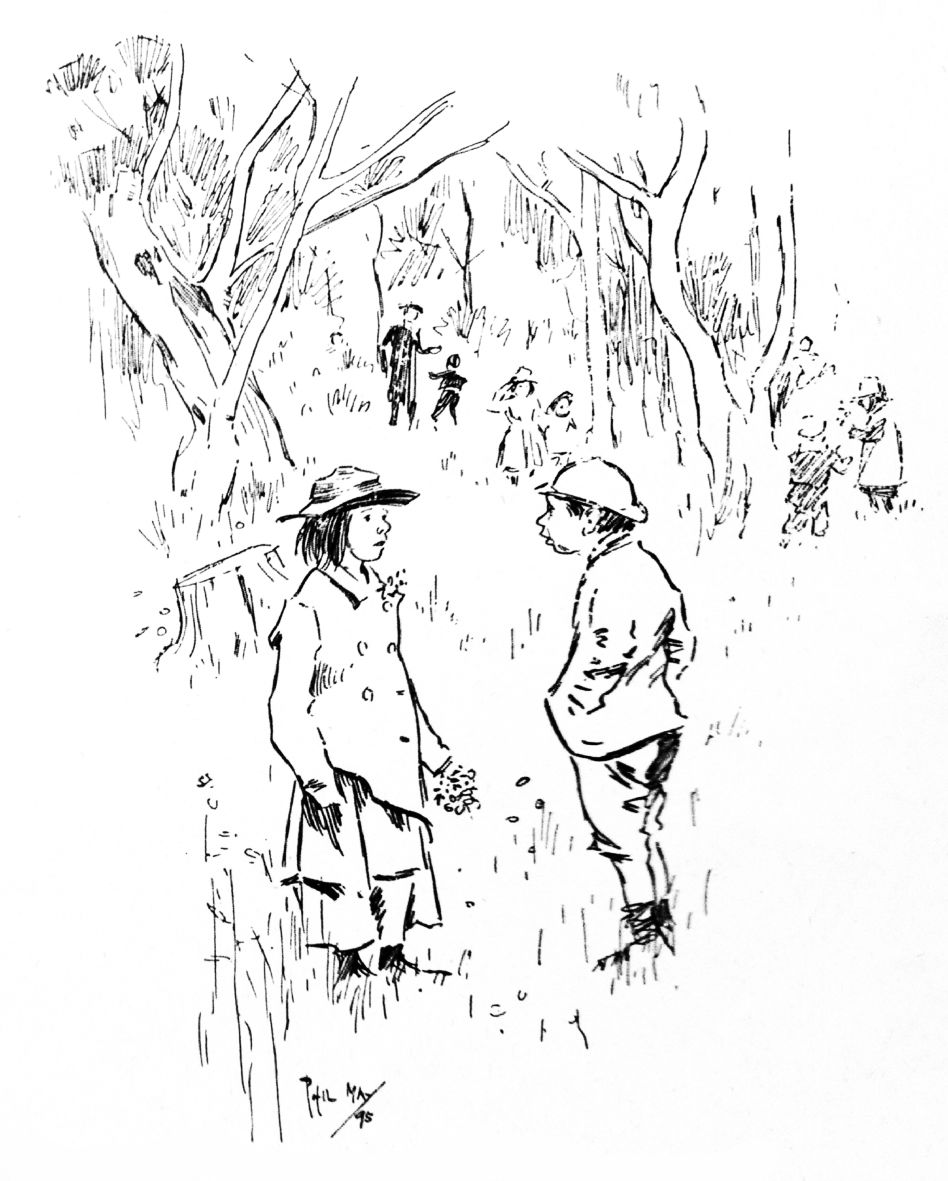 Ragged Urchin (who has just picked up very short and dirty end of a Cigarette). “Hi, Billy! Look ’ere! See what you’ve missed!”