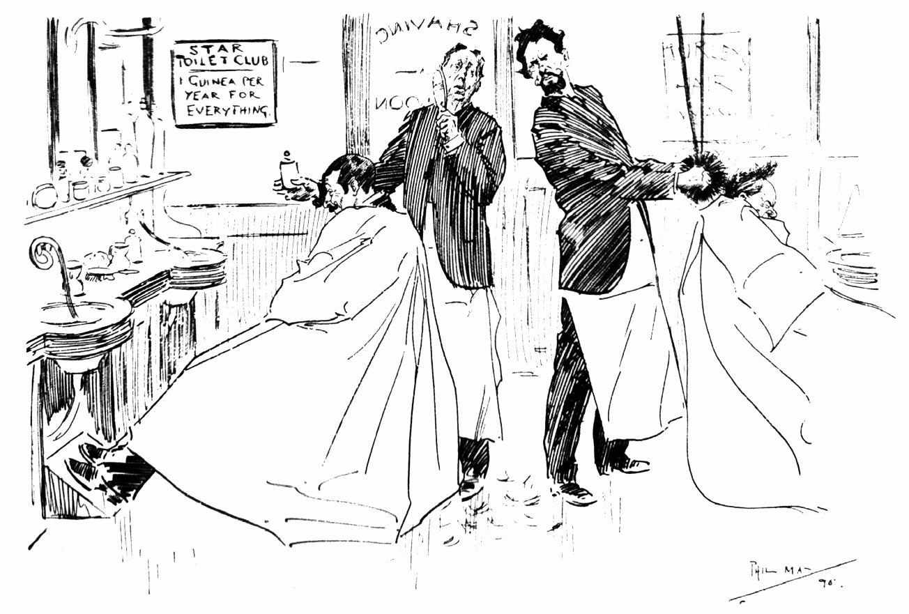 N.A. (after singeing). “Shampoo, Sir? Good for the ’Air, Sir.”