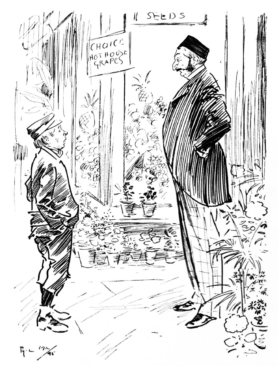 Youngster (who has just had a Penny given to him). “’Ow much is them Grapes, Mister?”
