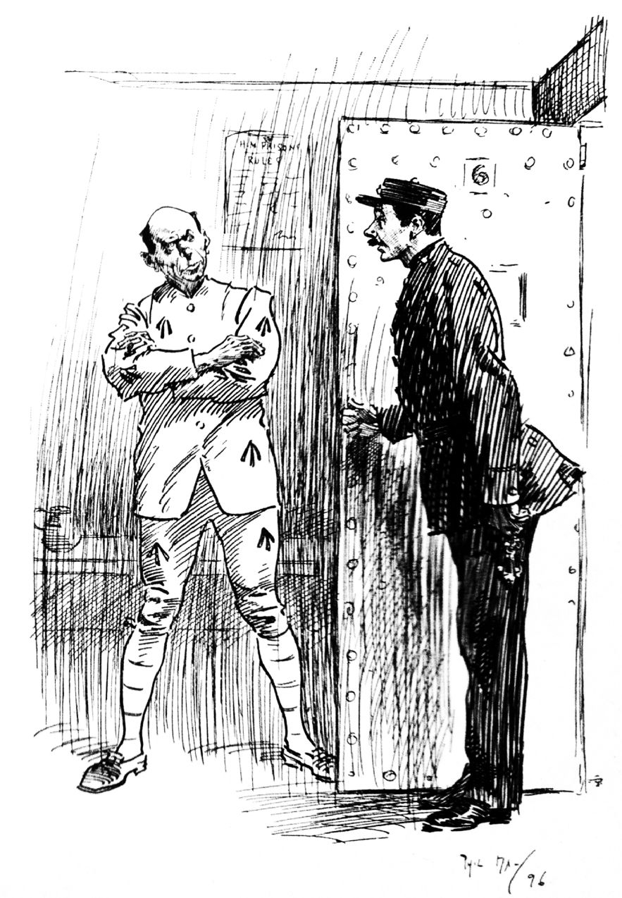 Editor of Libellous Rag (who has just received a terrific but well-deserved kick). “Dud you man thot?”
