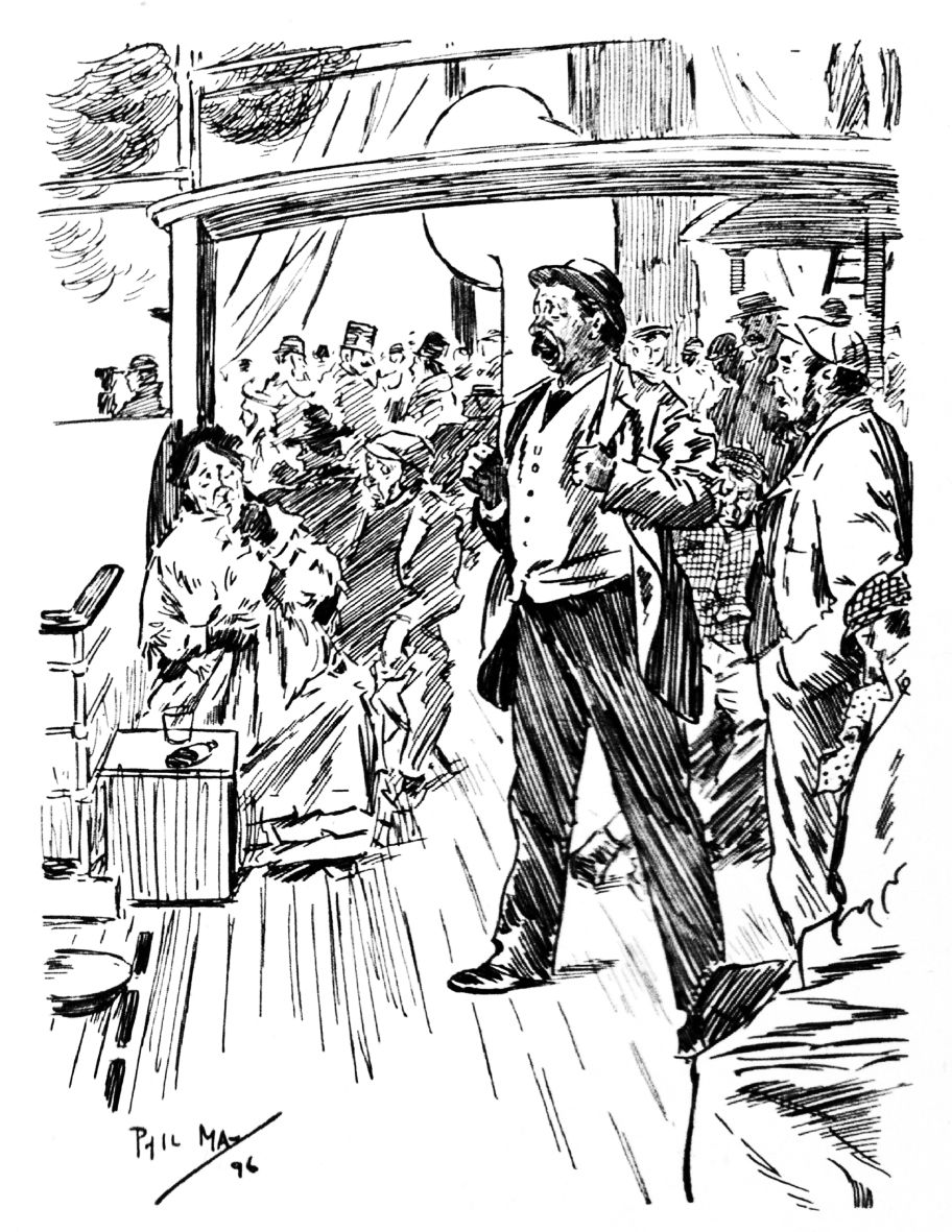 Enthusiastic Briton (to seedy American, who has been running down all our National Monuments). “But even if our Houses of Parliament ‘aren’t in it,’ as you say, with the Masonic Temple of Chicago, surely, Sir, you will admit the Thames Embankment, for instance——”