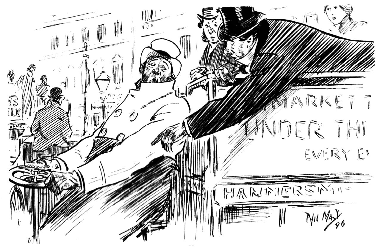 Tramp (to benevolent but inquisitive Lady). “Well you see, Mum, it were like this. I were a ’Addick Smoker by profession; then I got ill, and ’ad to go to the ’Orspital; then I sold Cats’ Meat; but some’ow or other I got into low water!”