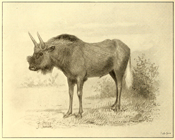 From my position at the Zoological Society and from the aid received from numerous correspondents in all parts of the world, I had little difficulty from the first in providing my much-esteemed friend with materials for his studies, and in the beginning of 1871 had the pleasure of putting at his disposal some notes and materials concerning the Antelopes of the genus Tragelaphus. Upon these was based the excellent paper on that genus read by Sir Victor before the Zoological Society on the 16th of May of that year, the first of a series of essays on this and kindred subjects. Four similar papers, as will be seen by reference to the Zoological Society’s ‘Proceedings,’ followed in 1872, three in 1874, and others in succeeding years, until 1878, when, I regret to say, they came to an abrupt conclusion. The last of the series was one of an extremely useful and important character, containing, as it did, a complete essay on the classification of the Deer-family and a synopsis of the existing species, which, until recently, has remained our leading authority upon this difficult group of Mammals. During the whole of this time also Sir Victor had been engaged in collecting specimens, and in having drawings made by Wolf and put upon the stone by Smit, for a complete work on the Bovine animals which he had planned out and proposed to write. After 1878, [vii]however, other matters intervened and sadly interfered with my friend’s studies in Natural History. Sir Victor changed his habitual residence to Pau, and though I now saw him occasionally in London on his way from France to his home in Ireland, I could never induce him to continue his former researches, although he always assured me that he was still devoted to Natural Science and was determined to return to it eventually. Circumstances, however, prevented him from carrying his wishes into effect. In November 1891, when still in the prime of life, Sir Victor died, leaving his great work still unfinished, and represented mainly by a series of over a hundred lithographic plates, which, as already mentioned in the Introduction, have formed the basis of the present work. The MSS. which were also kindly placed at my disposal by the family, not having been touched for nearly fifteen years, were in such an incomplete state that it was impossible to utilize them. Upon pointing out this to his son, the present Sir Douglas Brooke, he was good enough to assure me that his only wish was that the best possible use for Science should be made of the whole of the materials accumulated by his father. Acting upon this understanding I undertook to prepare the letterpress of an entirely new work on the Antelopes, using such of Sir Victor’s plates as I could employ for its illustration.