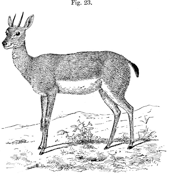 [1] Besides the normally coloured specimens of Steinbok and Grysbok found so commonly in various parts of the Cape Colony, there occasionally occur pale-coloured, more or less albino, examples to which the names “Bleekbok” and “Vlackte-Steenbok” have been applied by the Dutch.