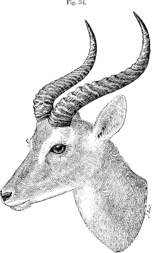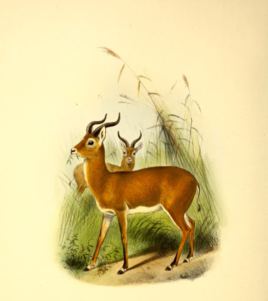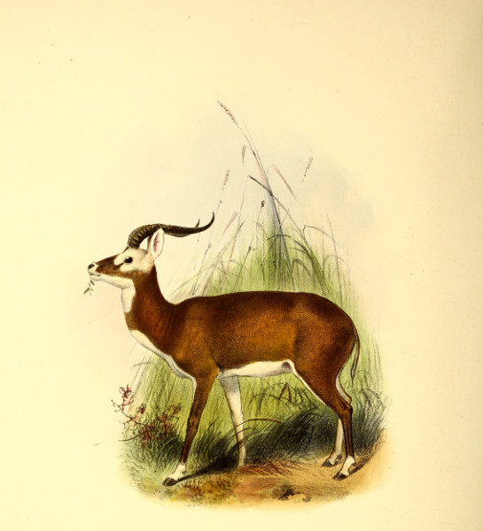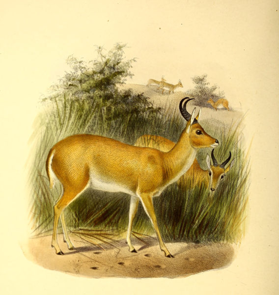 In 1822, however, Desmoulins, in his article on Antelopes in the ‘Dictionnaire Classique d’Histoire Naturelle,’ redescribed the species as Antilope lanata, from specimens transmitted to Paris from the Cape by Delalande; and two years subsequently Burchell, who had met with this Antelope during his travels in Bechuanaland, gave it the new name Antilope villosa; but neither of these appellations has attained much circulation.