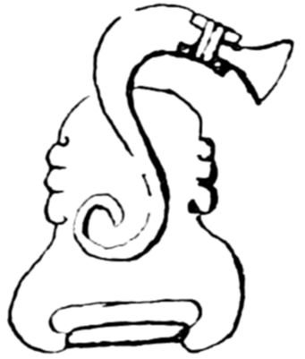 In the midst of an earthen tripod, surrounded by smoke and flames, we perceive a small disk of a yellow color. Our attention is called to the peculiar mark imprinted on the surface of the disk. Upon searching in Lord Kingsborough’s Collection, Vol. V., page 112, plate 71, where the interpretation of the little picture is given, we learn, that the man sitting by the tripod, is meant to be a goldsmith. Hence we conclude the disk must be understood to mean a round piece of gold, and that very probably the mark printed on it, was the usual symbolical 19sign for gold.[13] At the right of the tripod sits a man wrapped in his mantle, no doubt the master of the work-shop; for the addition of a flake flying from his mouth, as the typical sign for language or command, gives us a right to suppose that we have before us the so-called temachtiani, or master of the trade. At the left side crouches the apprentice, tlamachtilli. He holds in his right hand 20a staff, one end of which is in his mouth and the other is placed in the crucible. Tlapitzqui, in the Nahoatl language means at the same time a flute player and a melter of metal. This etymological version therefore conveys the idea, that the staff held by the smelter signifies a pipe or tube used for increasing heat by blowing the fire, as the staff is similar to a long pipe or flute and is held in the 21mouth of the workman. In his left hand he holds a similar staff, but there is no means of recognizing whether it is a stick for stirring the embers, or a tube to be used alternately with the other. Now, we shall be permitted to draw a conclusion from this process of smelting gold as to the manner of smelting copper. The process must have been exactly the same with both. For, if the Mexican goldsmith, with the aid of a blowpipe, was able to increase the heat of the fire to such a degree as to make gold fusible, a heat which requires 1,100° C., he cannot have found greater difficulties in melting copper, which requires nearly the same degree of heat; and tin, which is far more easily fusible, could have been treated in the same way.