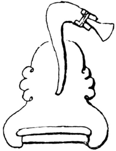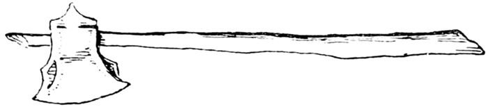 The axe stands in the first place. Cortes, we shall remember, omitted to specify any of the objects which he saw exposed for sale in the market-place. Not so his companion, Bernal Diaz. He, after a lapse of 40 years, when occupied with the writing of his memoirs, has no recollection of other tools, which he undoubtedly must have seen, except the much admired bronze axes. Specimens of these were sent over to Spain in the same vessel on which the above mentioned presents to the Emperor were shipped. At their arrival at Palos, Petrus Martyr of the Council House of the Indies was one of the first to examine the curiosities sent from the New World, and to gather from the lips of the bearers their verbal comments. His remarks on the axes he had seen, are “with their bronze axes and hatchets, cunningly tempered, they (the Indians) fell the 25trees.” There are three expressions in this passage which will claim our attention. First, we learn that two classes of axes were sent over, one of which Martyr recognized as a “secūris” the other as a “dolabra” hence a common axe, and another which was like a pick or a hoe. Further on we shall give an illustration of these axes, taken from the pictures of the natives, when we are to recur again to this subject. Our author, in the second place, describes the two axes as of bronze, for this is the English rendering of the Latin expression: aurichalcea. Thirdly, we learn, that the blades were “cunningly tempered” or “argute temperata.” This language requires explanation.
