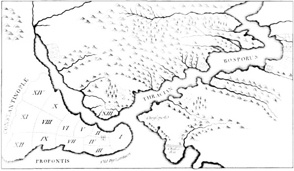 I. The Thracian Bosporus, with the Situation of Constantinople, as antiently divided into Wards; from Du Fresne.