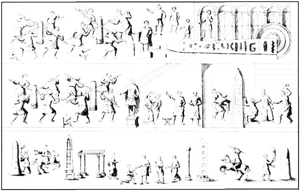 VIII. The antient Hippodrom, with the Thebæan Obelisk, and the Engines by which it was erected; from Spon and Wheler.