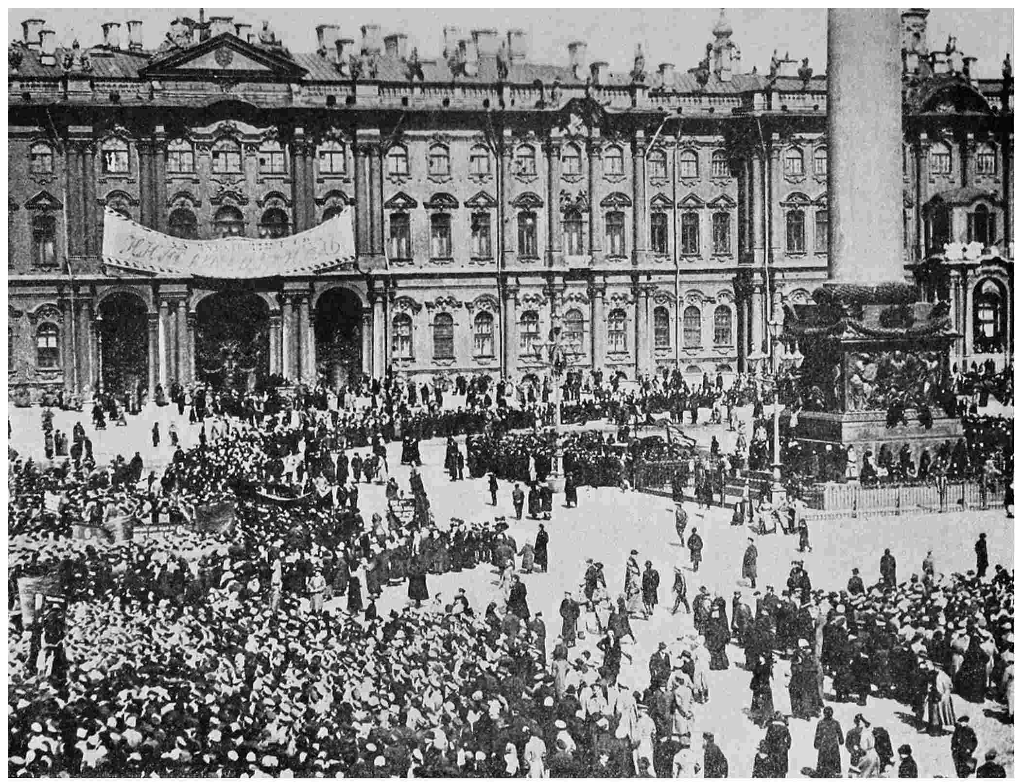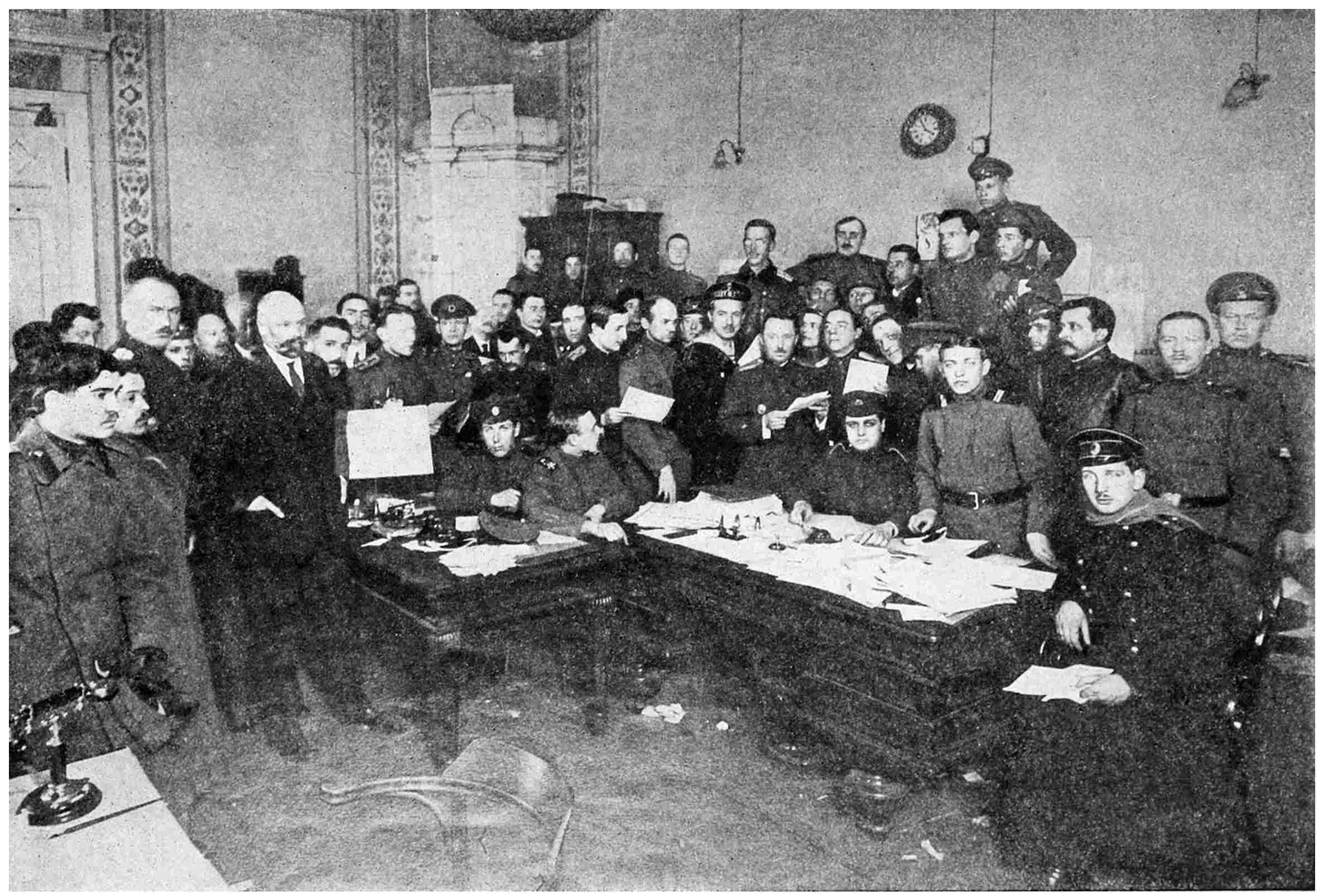 The first thing that was done by the Duma was to refuse to disperse and to resist the ukaze of the Czar that had prorogued its debates for an indefinite time. The socialist deputies went about trying to get the population of Petrograd to join in the vast movement of revolt they meant to bring about. The latter was but too willing to do so, and the want of provisions was the pretext which the people took to organise vast meetings, and a strike in all the factories. Great masses of men and women paraded the streets, and were dispersed by a formidable police force which had been assembled by Mr. Protopopoff and armed with machine guns that were used against the crowds, whenever these did not obey immediately the injunctions to disperse given to them by special constables and Cossacks gathered together in all the principal streets and squares of the capital. The regular279 troops had been consigned in their barracks and ordered to keep themselves ready to lend a hand to the police. But the unexpected happened. The soldiers had been worked upon by delegates from the workmen, and they declared that they would not obey orders, should any be given to them, to fire upon the populace assembled in the streets. The latter seemed quite sure of impunity, because notwithstanding the preparations made by the police to quell the revolutionary movement, the existence of which was already recognised everywhere, it refused to disperse, and on the contrary proceeded to commit the only acts of violence which were performed during the course of the mutiny. It threw itself on the prisons where political offenders were confined, plundered and burned them, and liberated their inmates. A few other excesses were performed, upon which the Duma constituted itself an executive committee, which assumed the task of restoring order in Petrograd.