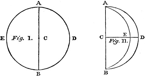 [173] This definition is no where extant but in the commentaries of Proclus. Instead of it, in almost all the printed editions of Euclid, the following is substituted. A segment of a circle is the figure contained by a diameter, and the part of the circumference cut off by the diameter. This Mr. Simson has marked with commas, as a symbol of its being interpolated: but he has taken no notice of the different reading in the commentaries of Proclus. And what is still more remarkable, this variation is not noticed by any editor of Euclid’s Elements, either ancient or modern.
