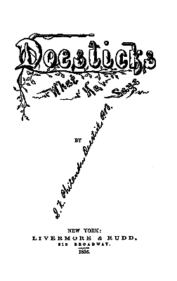 "Doesticks is an original genius. His book is just the thing to pick up at odd moments, when time hangs heavy, and the mind seeks to be amused."—Gazette and Democrat, Reading, Pa.