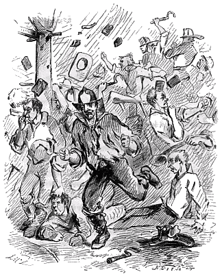 "Doesticks is a wonder. The same happy spirit seems to pervade the author and the artist—the illustrations of the latter are quite up to anything Cruikshank ever achieved in the same line. If anybody can look at these spiritings of the pencil without a loud laugh, he is certainly out of our list of even grand fellows—but to enter fully into the pleasing features of the work—to laugh over the jokes, to enjoy the home-thrusts of wit and satire, our friends must buy the book itself."—Sunday Mercury, N. Y.
