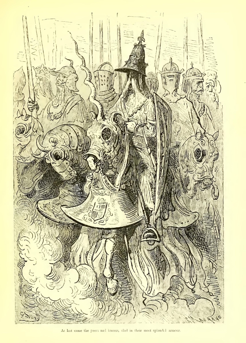 At last came the peers and barons, clad in their most splendid armour. What a clash of gold, iron, and steel! How many swords that had won renown! Every one of these puissant arms was worth ten ordinary knights in the tourney-ground—in battle worth a thousand!
