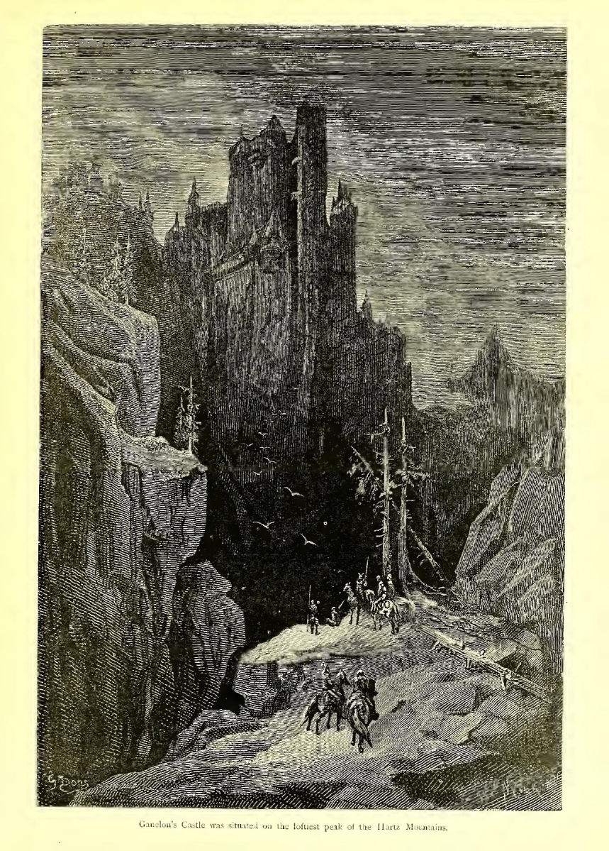 GANELON’S castle was situated on the loftiest peak of the Hartz Mountains, the Blocksberg. There, in the midst of the Hercynian forest, which cannot be less than twenty-four leagues in length by ten in breadth, towered the eyrie of this vulture. One road, and only one, traversed this vast extent of forest, but Ganelon took care that it should always be in good repair; it was a courtesy which he felt was due from him to the travellers he despoiled.