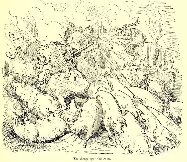 Ganelon and his men had charged into the midst of an army of porkers, driven by Westphalian swineherds.