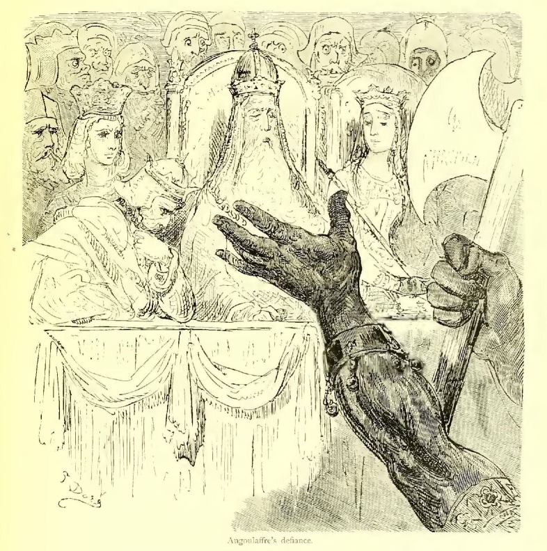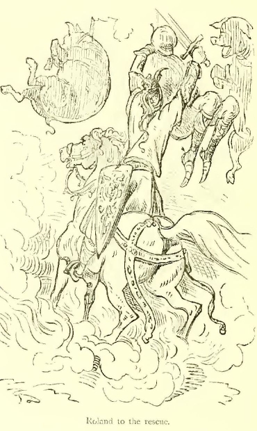Meanwhile Mitaine had ridden close up to Marsillus, and rising up in her stirrups, to make sure Roland should see her, smote him on the face, crying, as loud as she was able—“Behold the King of Saragossa! Mountjoy for Charlemagne!”