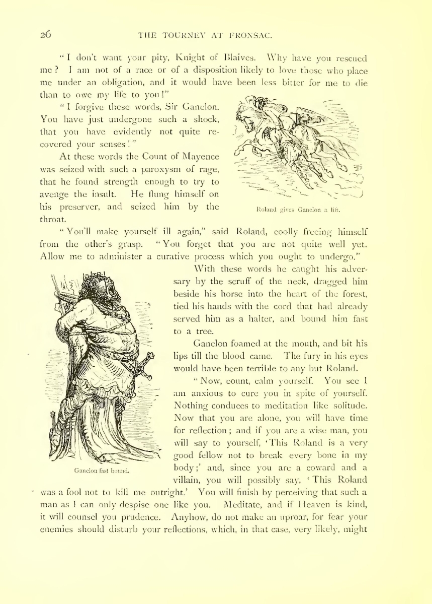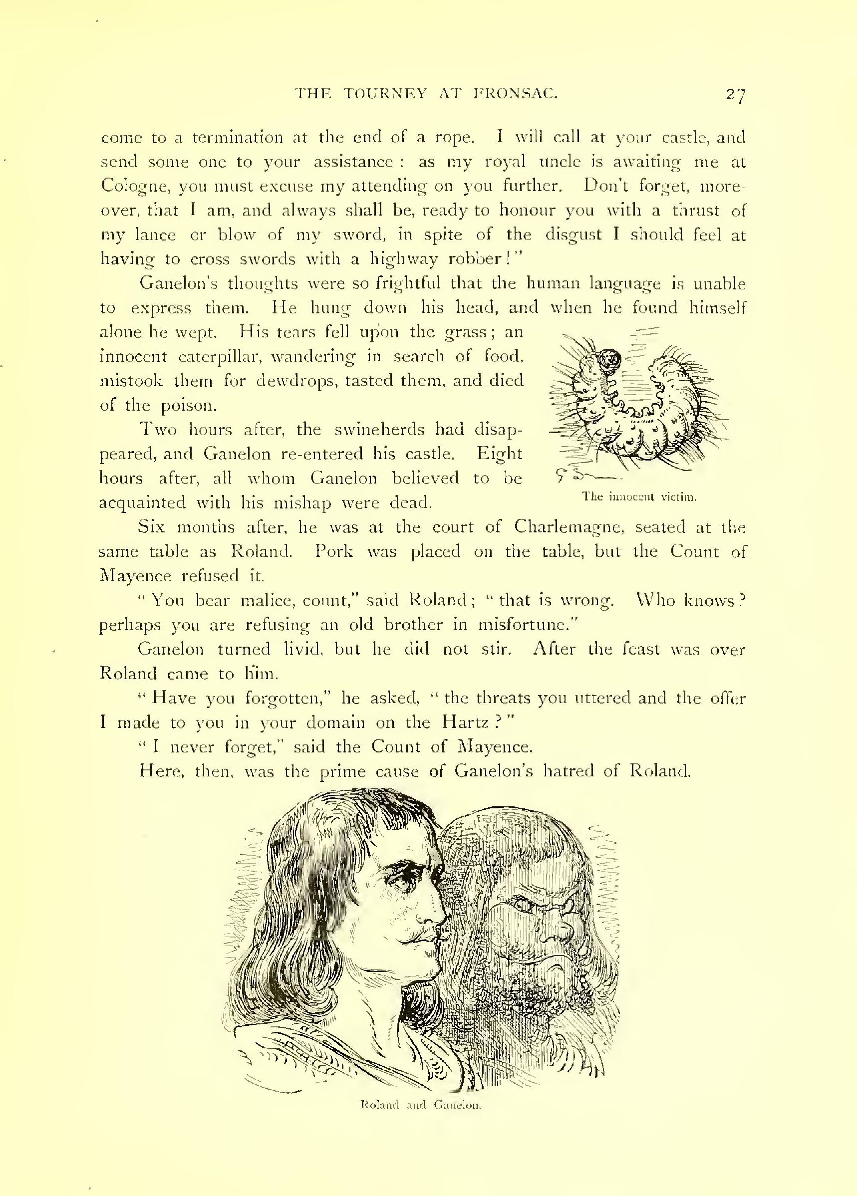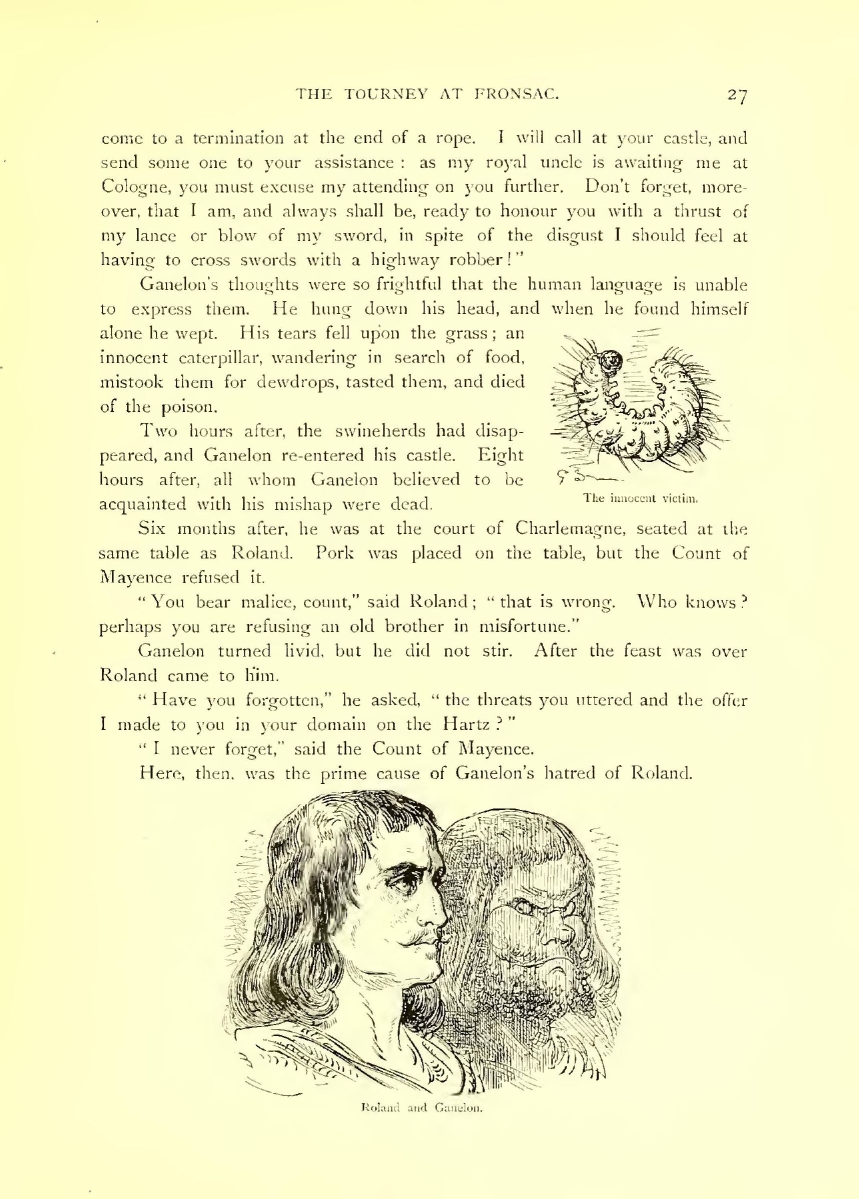Ganelon re-opened his eyes. His succession of tumbles had done more to recover him than all the eau-de-cologne in the world would have done. When he saw his preserver, he heartily wished it had not been Roland.