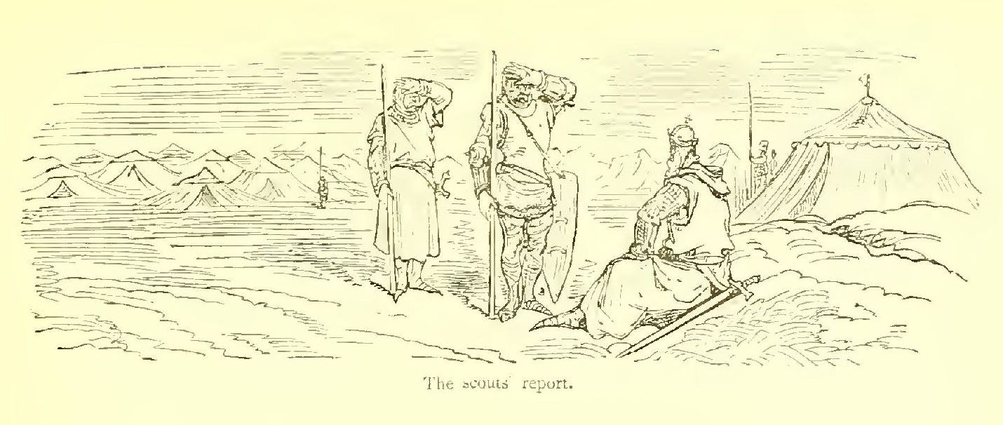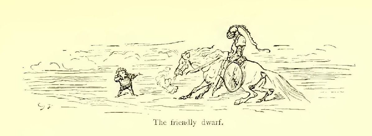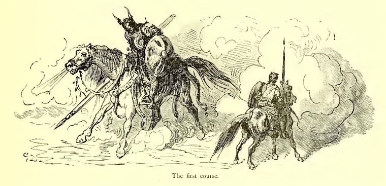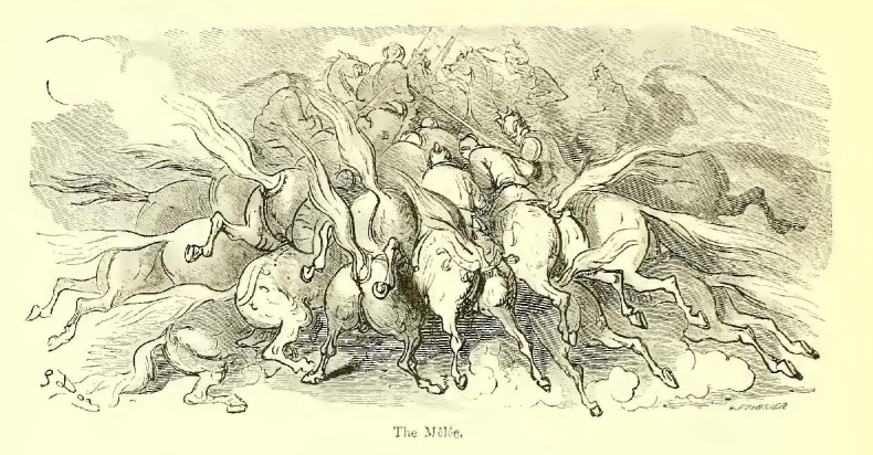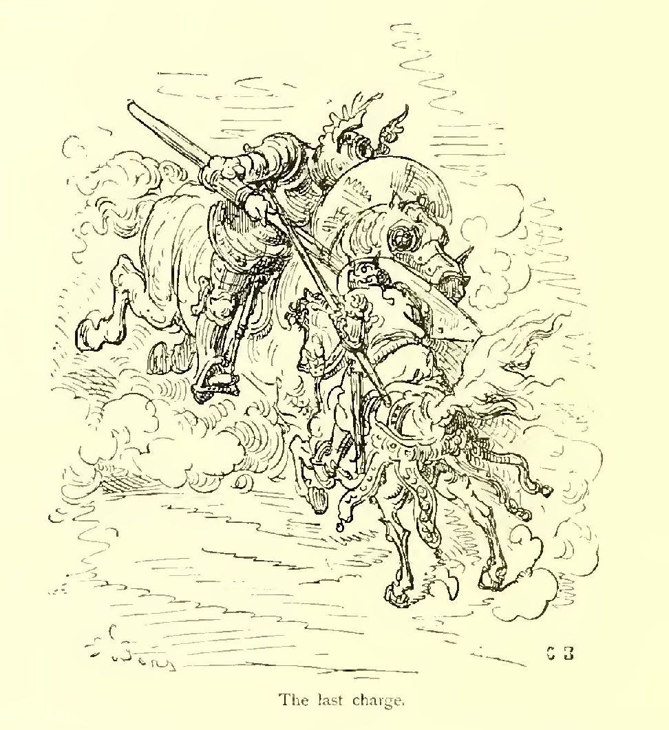 “Brethren,” said Turpin, pointing to the Saracens with his mace, “yonder comes our death-struggle. Let us be polite, and go meet it; we shall only be in Paradise the sooner!” and he rode off as swiftly as if he bestrode a swallow.