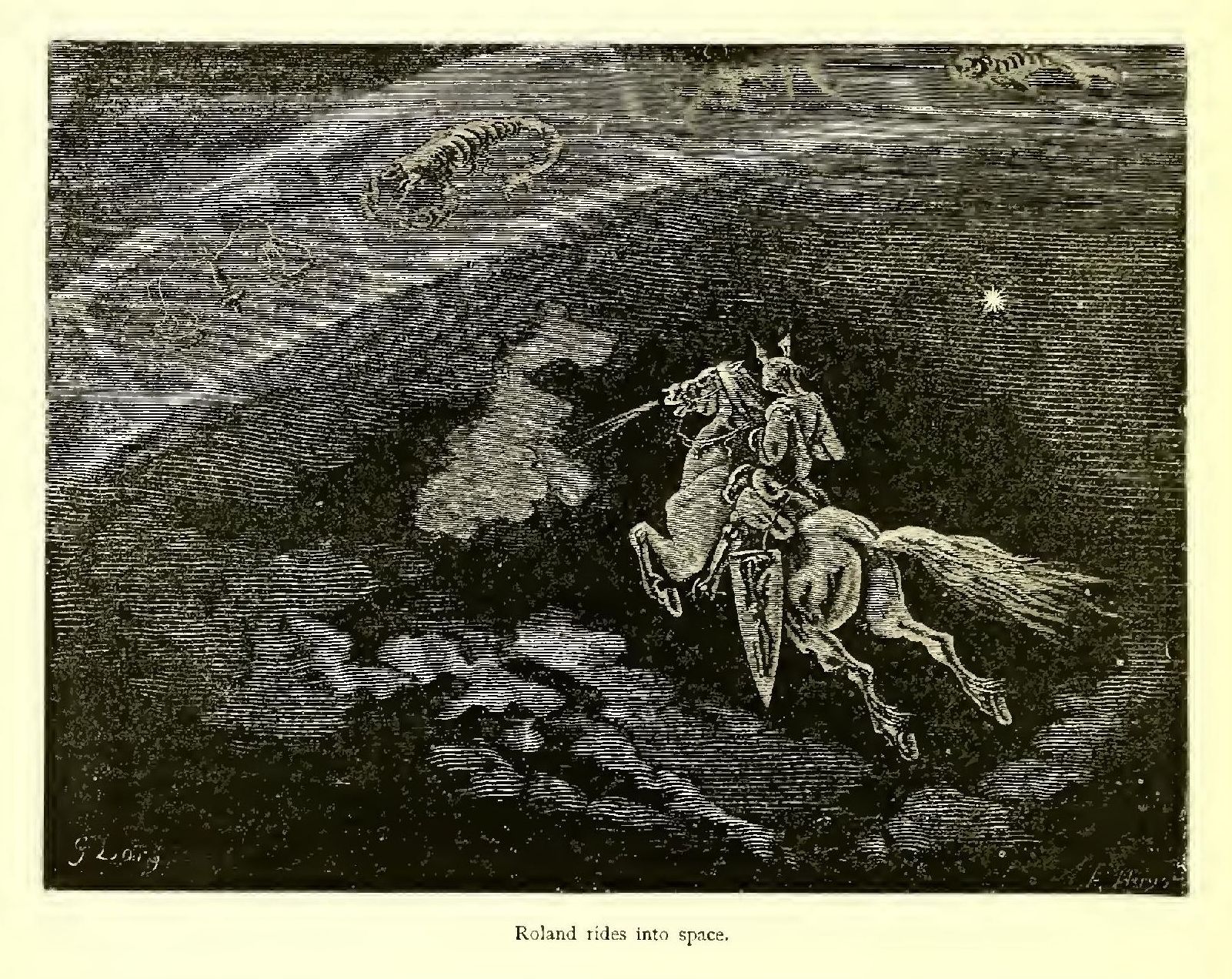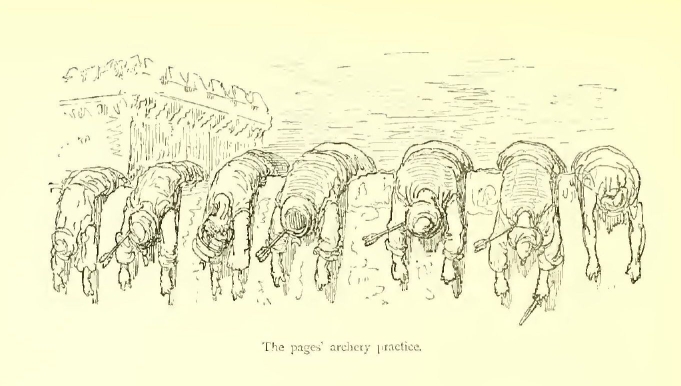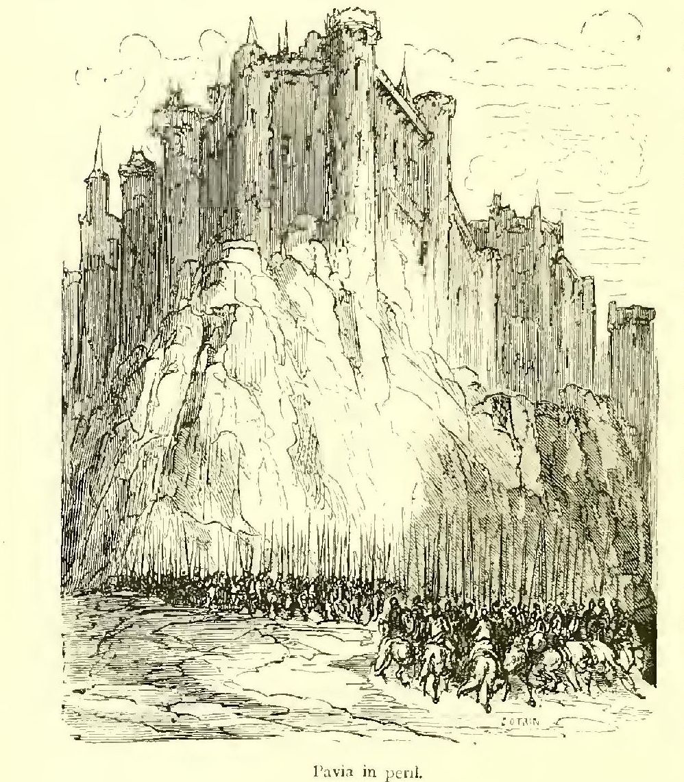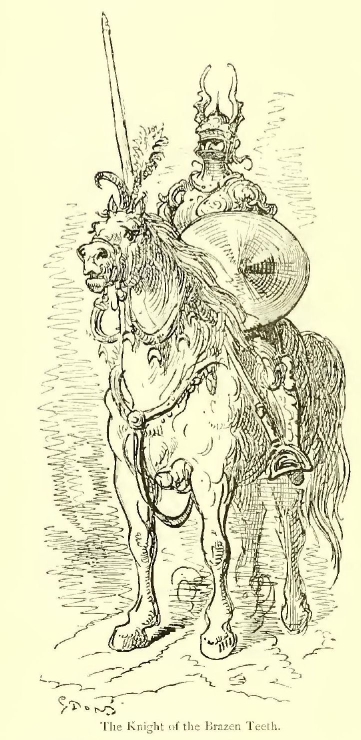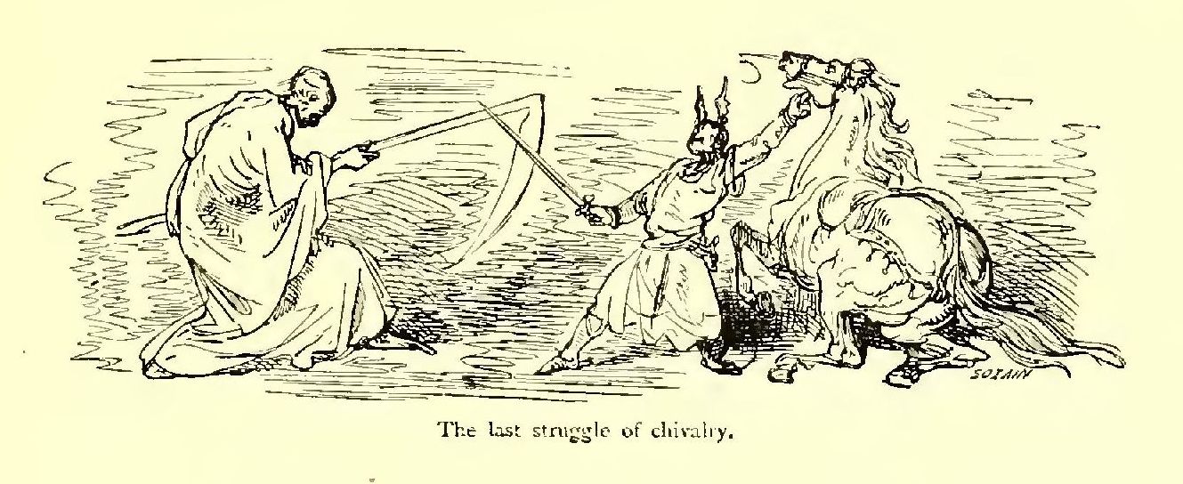 “Brethren,” said Turpin, pointing to the Saracens with his mace, “yonder comes our death-struggle. Let us be polite, and go meet it; we shall only be in Paradise the sooner!” and he rode off as swiftly as if he bestrode a swallow.