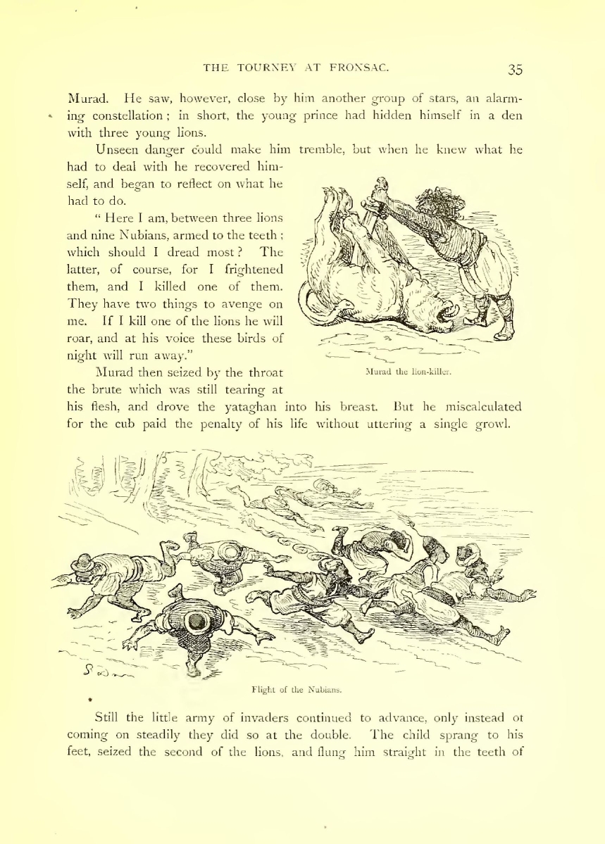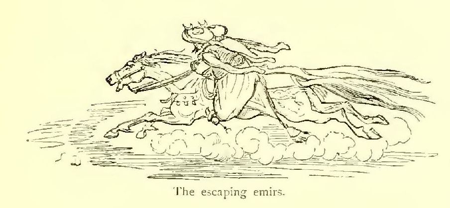 “Here,” cried they, “beyond a doubt, are those we are waiting for. Let us save them three-quarters of their journey;” and they rushed forward, sword in hand. The two opposing storms of dust approached each other, and from the further came the cry, “i’ what are you doing? You’ll destroy the beasts!”