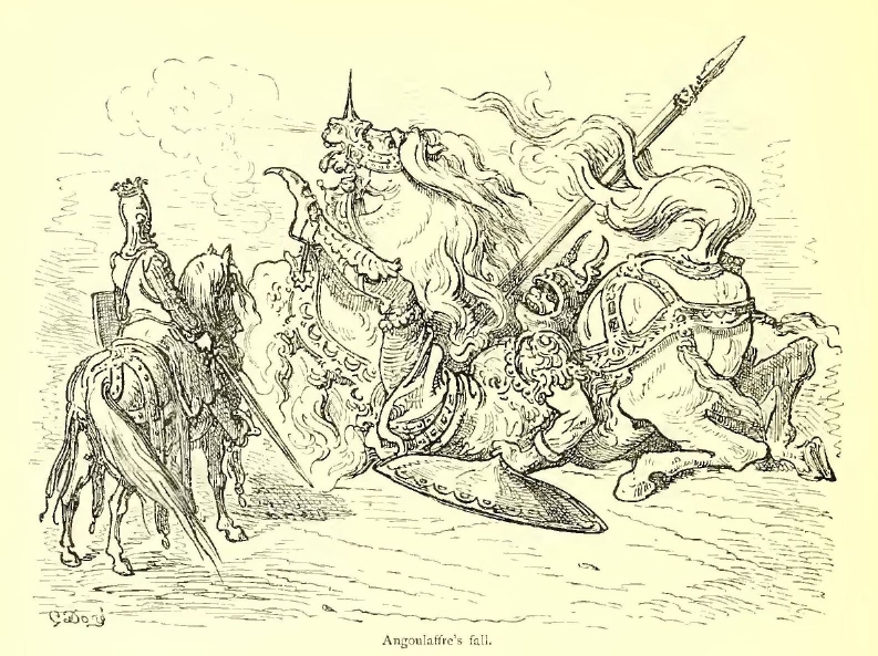 Climborin smote down Angelier of Gascony, but he did not live more than ten seconds to enjoy his conquest. Miton had seen the deed, lowered his lance, and pierced the Pagan’s throat.