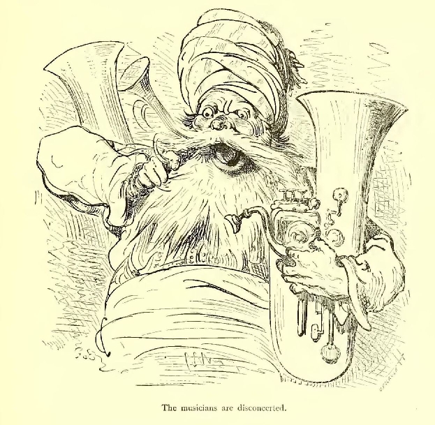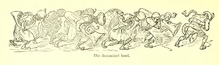 The Count of Mans lifted his bugle to his lips, and blew so loud and long, that the veins in his temples stood up like ropes, and the blood flowed from his mouth.
