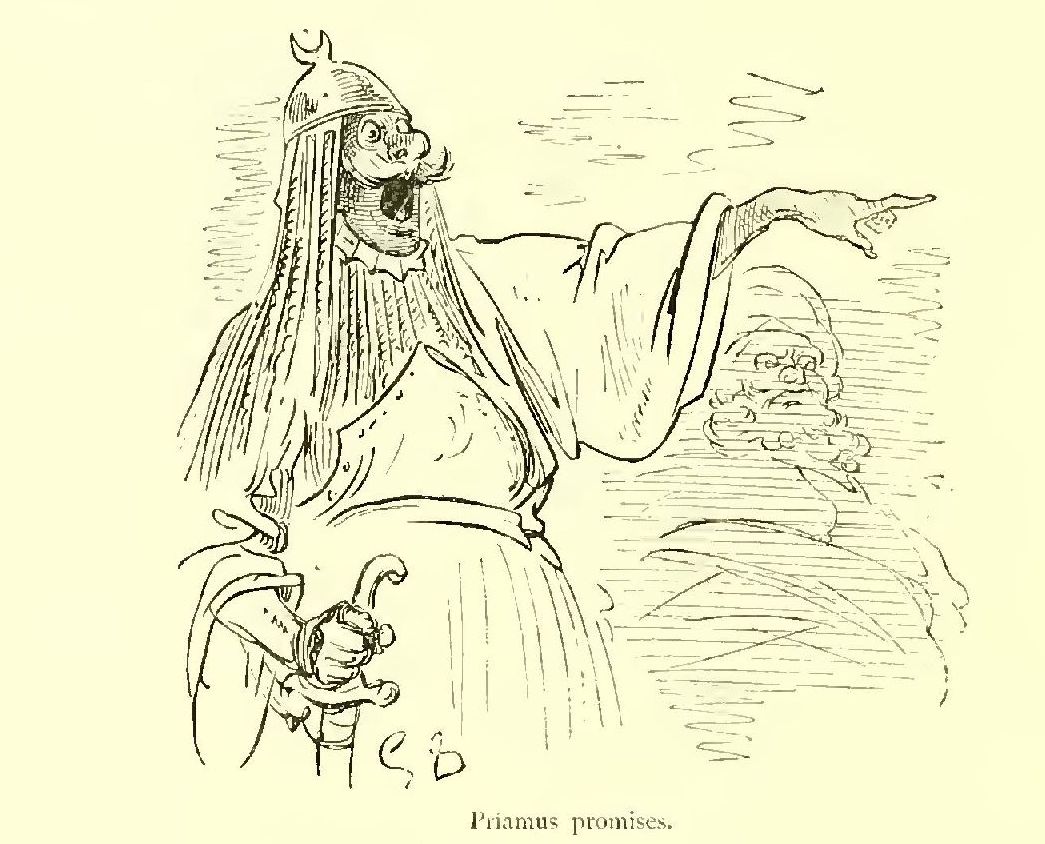 “It strikes me,” said the chief swineherd, “if we were to omit an opportunity of throwing a light on a point of interest to culinary science, we should regret it all our lives. A rare and remarkable opportunity offers itself to us now—we must not allow it to escape us. Are you not all equally anxious, with myself, to learn whether it takes longer to smoke a peer than a pig?”