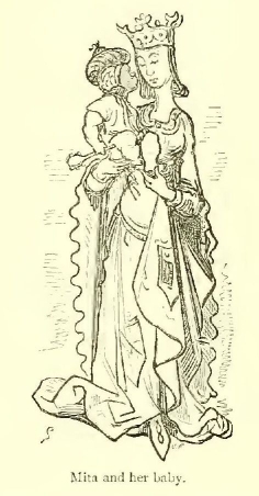 As he approached Aix-la-Chapelle the Emperor saw a long, long line of weeping women, all attired in black, coming out to meet him. It was the fair Aude, supported by her widowed sister Mita, and followed by a suite of three hundred ladies.