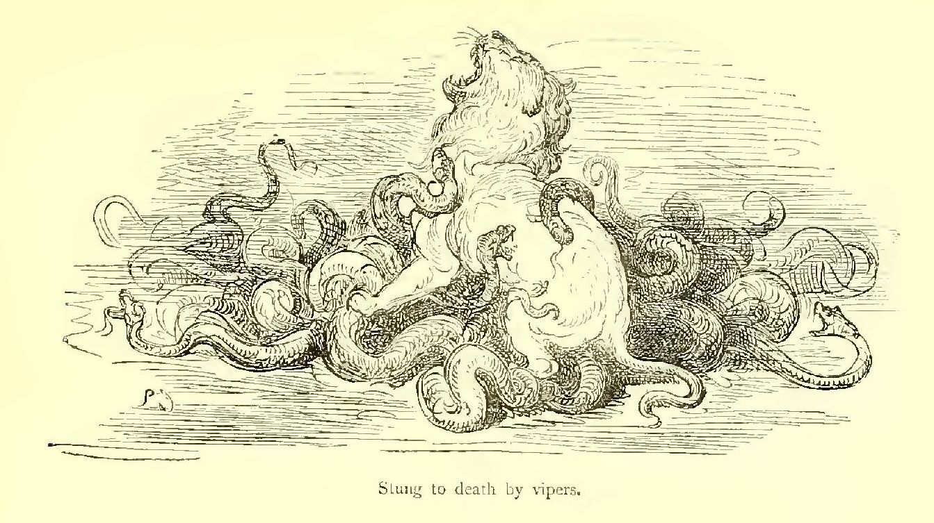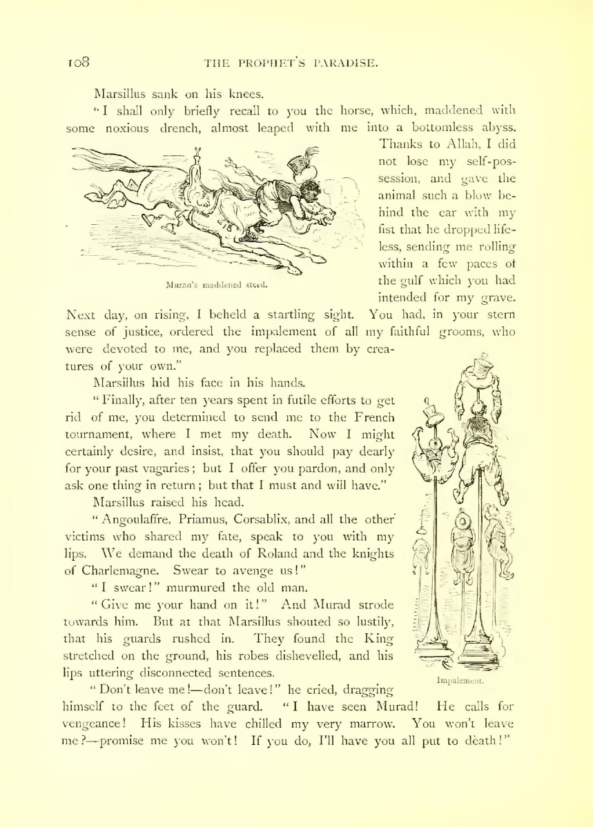 She could say no more. Marganice, King of Carthage, and uncle of Marsillus, dealt her a blow on the chest that was far heavier than was needed. The poor girl sank, insensible, and rolled under the horse’s hoofs, with blood gushing from her lips and nostrils.