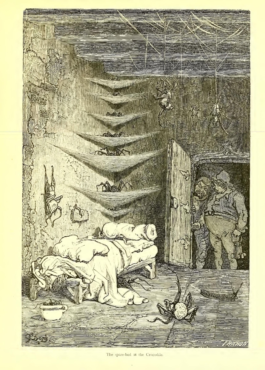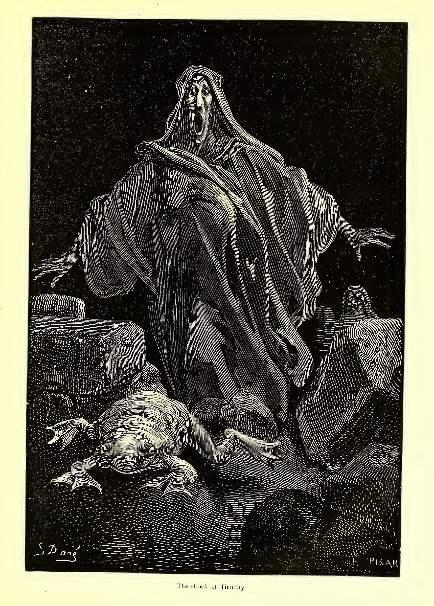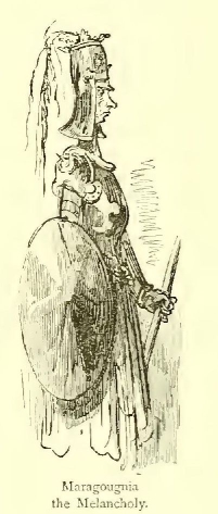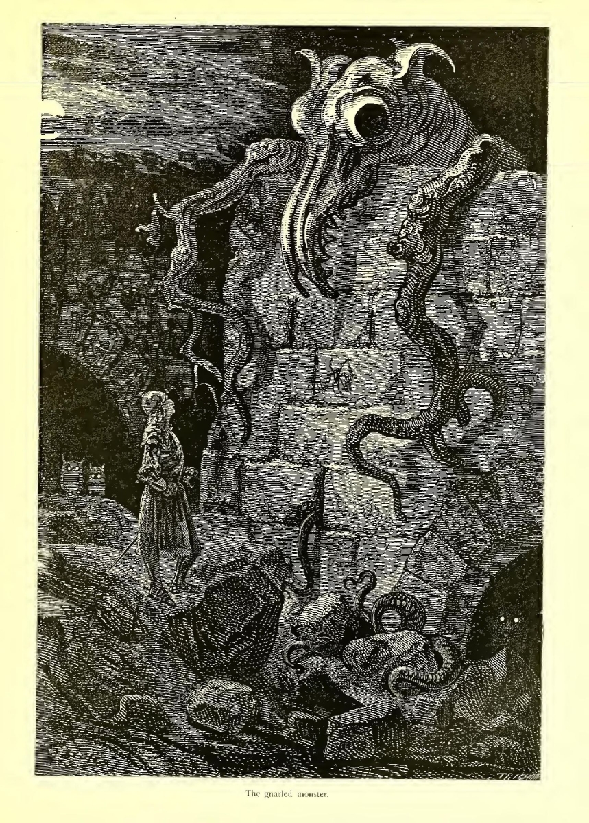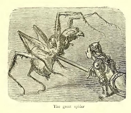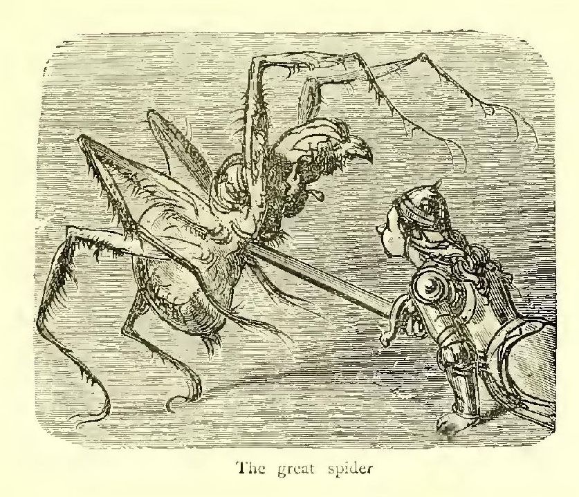“Come and seek me, dastard of a Croquemitaine!” she cried. “Here I am well protected from thee.”