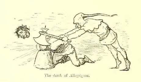 “None,” said the heretic; whereupon, with three mighty blows of his mace, Turpin scattered over the field the amethysts, topazes, and carbuncles that covered the Pagan’s shield. At the third blow the soul of Abyme fled to the regions below.