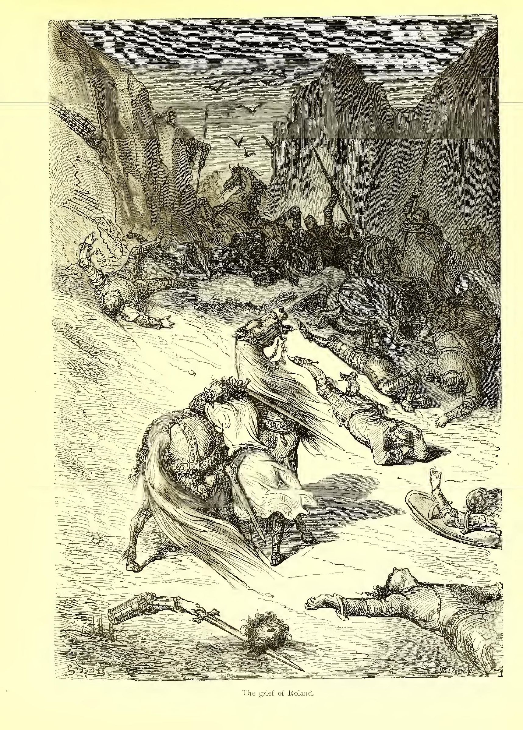 Roland was the only one left alive on the plains of Roncesvalles. To the shouts and yells of conflict had succeeded a silence infinitely more terrible.