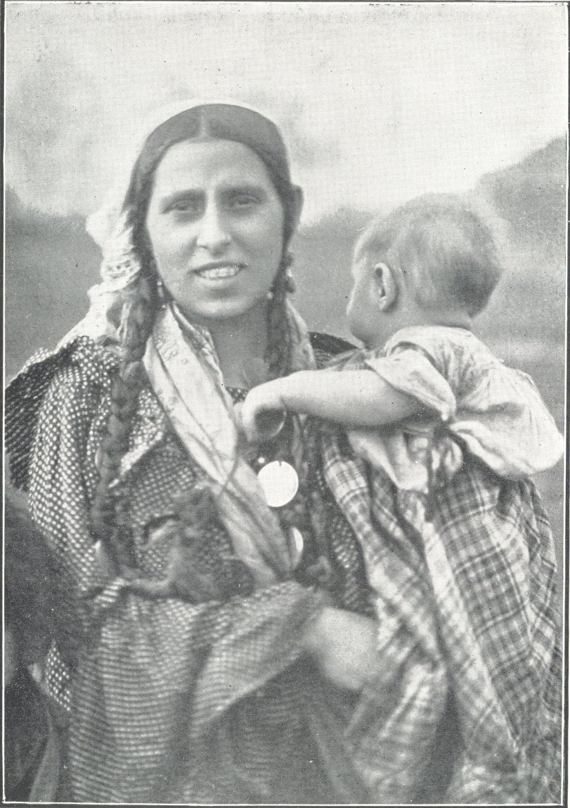 His exceptional position seemed to have had a malign influence on his character, for he was not a nice child. With the want of their robust health he lacked also the sturdy independence p. 39of his playmates. They were self-reliant, forward, often impertinent, but always lovable—he was petulant, fretful, even peevish, and instinctively one pitied rather than liked him. Yet in all the tribe there was nobody—man, woman, or child, from the great chief Kola himself to the half-naked little ones—who would have hesitated to make any effort or any sacrifice by which to mitigate the sick boy’s distress. To his mother he was more than all the world. She was Zhawzha, the chief’s daughter (though to those who were not of the afición, she would have called herself Sophie), a strangely pathetic figure in whose face one could see traces of great beauty marred by bitter anxiety for her son. Among our first duties as friendly visitors to the camp were those of acting as her dragoman in the local surgery and bringing an eminent specialist from Liverpool to visit the patient. But we discovered gradually not only that she had consulted other doctors in Birkenhead, but also that she had prescriptions and drugs, enough to have stocked a pharmacy, which she had obtained from continental physicians. And all had prescribed bromides, prohibited excitement, p. 40and bidden the distracted mother wait patiently and hope—for the boy was epileptic.