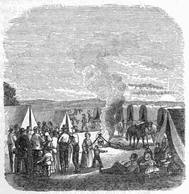 After a frugal meal, served throughout the various divisions of the camp, the evening of the 9th was spent in perfecting regulations for the long and dangerous trip, and in the forming of acquaintances, and the interchange of salutations and gratulations.