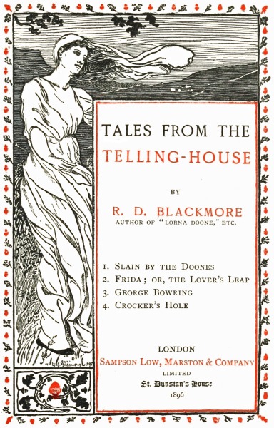 Now there was a young man about this time, and not so very distant from our7 place—as distances are counted there—who managed to make himself acquainted with us, although we lived so privately. To me it was a marvel, both why and how he did it; seeing what little we had to offer, and how much we desired to live alone. But Mrs. Pring told me to look in the glass, if I wanted to know the reason; and while I was blushing with anger at that, being only just turned eighteen years, and thinking of nobody but my father, she asked if I had never heard the famous rhymes made by the wise woman at Tarr-steps:
