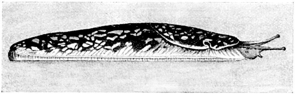 Among the lichens, which so abundantly cover the rocks and trees in South-western Ireland, and which impart such a characteristic feature to the scenery, we find a beautifully spotted slug (Geomalacus maculosus).[2] It is a stranger to the rest of the British Islands, and indeed occurs nowhere else in Northern Europe. We have to travel as far as Northern Portugal before we again meet with it, and it is there also that its nearest relations live.