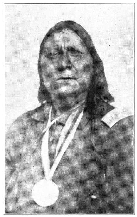 The company from Fort Wingate to Fort Dodge together with the headquarters' paraphernalia was under the command of Mr. Krause, a lieutenant of the fifteenth infantry. Instead of coming around by Albuquerque we came part way and then cut across country to the northeast. When within a few miles of the Rio Grande the wagon road bore down to the southeast. The infantry cut across in the direction of Barnalillo (double L has the sound of E in Spanish) and the transportation followed the wagon road. Mr. Krause and I took the ambulance and when we reached the river in place of going up stream on the west side as the wagons were directed to do we crossed over to the old overland stage route and then went north on the east side. It was[Pg 34] late when we reached the outskirts of the town and we noticed a great light as though some building was on fire. We had now left the stage road and were trying to find one that would take us to a crossing on the river. We were about to enter the town or pueblo, for it was an Indian pueblo, when we had a good view of the fire which proved to be an immense bonfire in the middle of the street with many people gathered around it. An Indian met us and gave us to understand that we could go no farther. With what little Spanish we could command, and by signs, we got him to understand that we wanted to reach the command on the other side of the river. By that time another Indian or two had joined us and they at once took the matter in hand. One of them got into the ambulance and by signs indicated to the driver which way to go and the first man to meet us signalled Mr. Krause and myself to follow him. He would take us through the pueblo, but started around the outskirts of the place and after what seemed to me an interminable time brought us up at a high bluff. It was quite dark and we could see the campfires across the river, but how to get there, or whether we would get there, seemed questionable to me. However, the Indian knew what he was about, and soon found the place he wanted, and disappeared over the side of the bluff on what proved to be steps cut out of the rock, leading down to the valley below. It was then only a short distance to the ford and our guide motioned us to stay there, and we understood he wanted us to wait for the ambulance, but he waded across the river. We found him on our arrival in camp carrying wood for the campfires and seemingly greatly pleased at being able to help us. We gave him a dollar at which he was evidently delighted. The transportation arrived soon after we reached camp and all was right again.